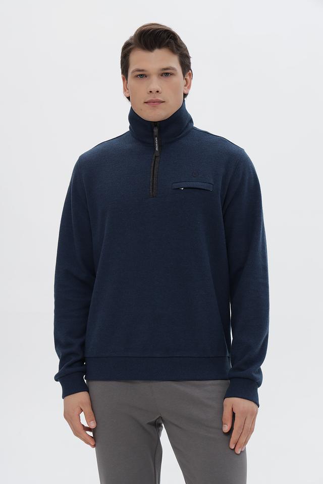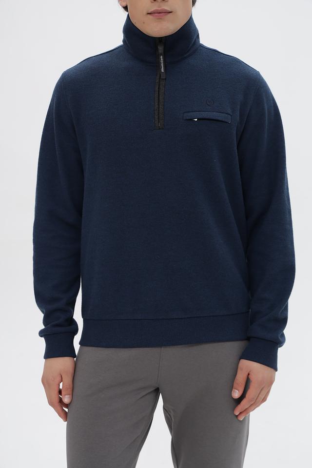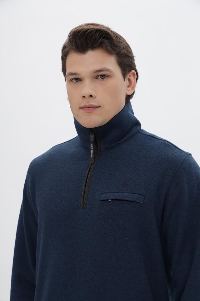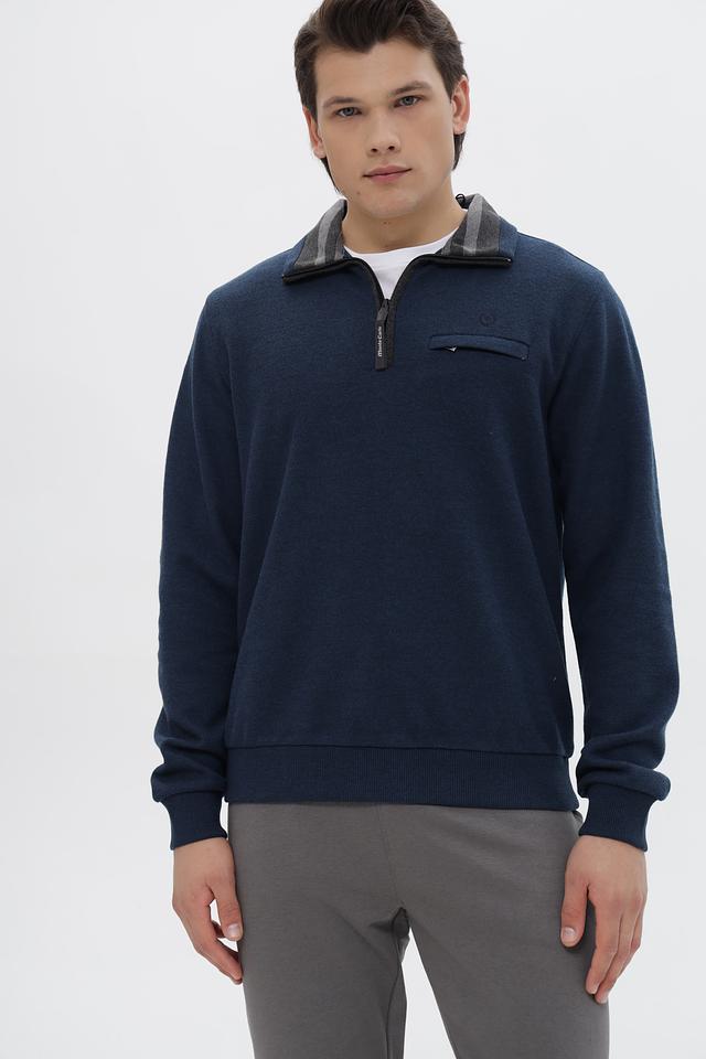 Мужской джемпер от Monte Carlo выполнен в насыщенном синем цвете. Модель имеет воротник-стойку и короткую молнию, что придает ей современный и стильный вид.