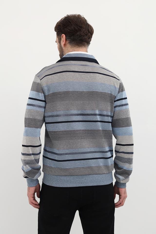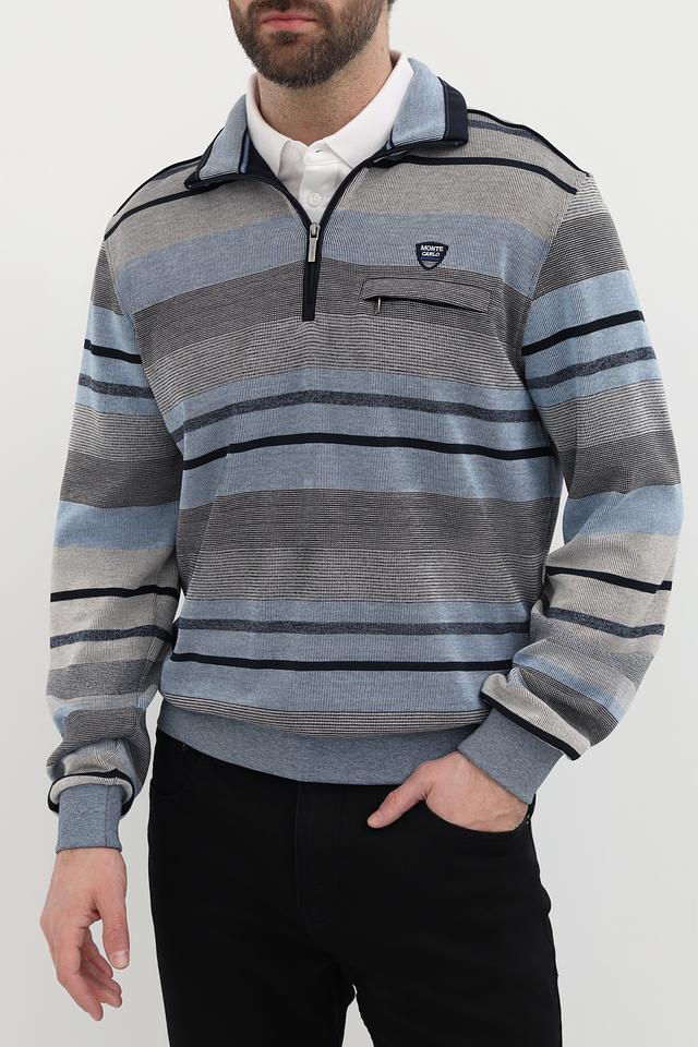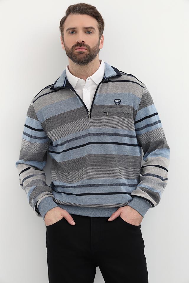 Мужской джемпер Monte Carlo голубо-серого цвета с полосатым узором и застёжкой на молнии. Изготовлен из 100% хлопка, обеспечивающего комфорт и удобство в носке. Отличный выбор для создания стильного повседневного образа. Состав: хлопок 100%