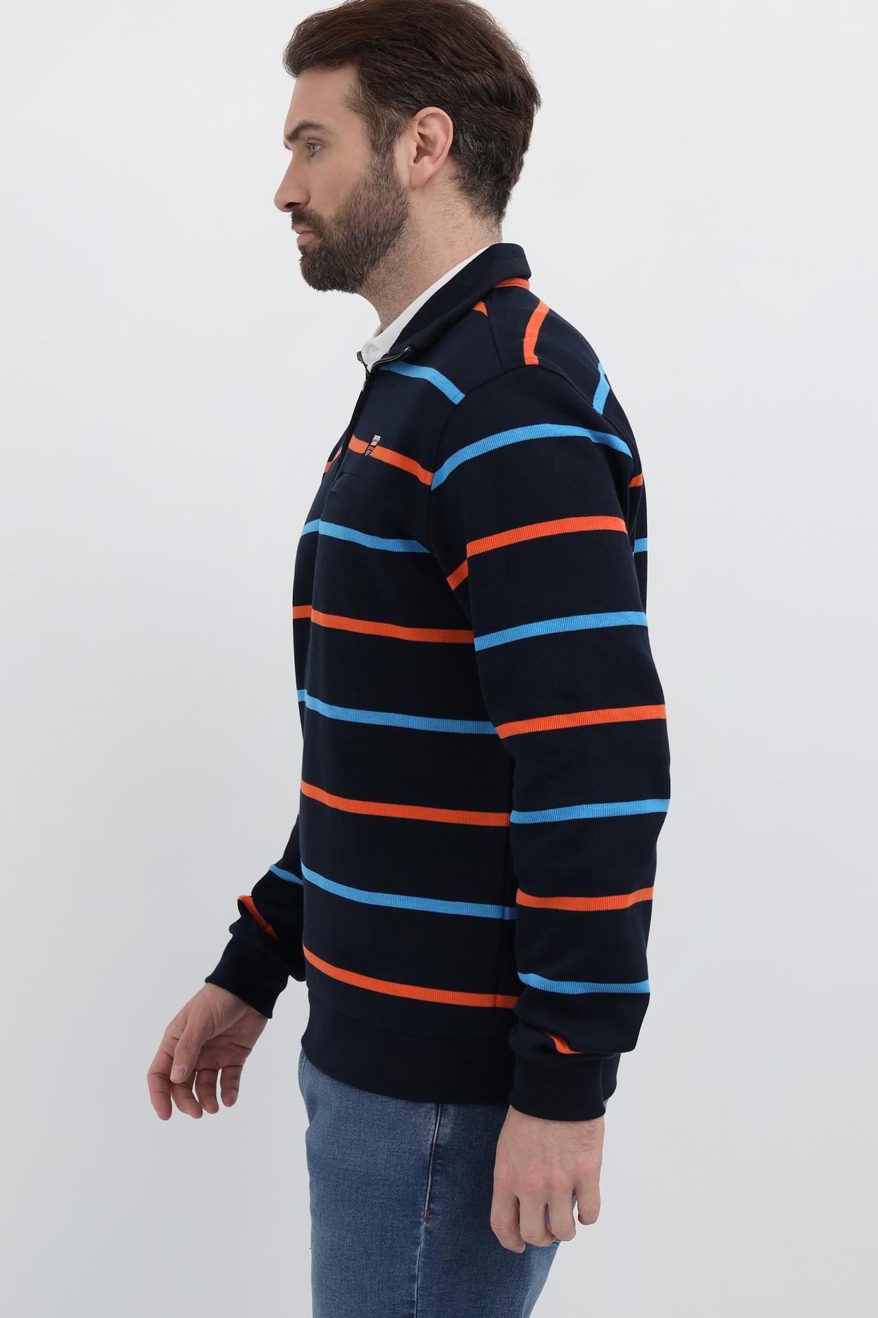 Полосатый дизайн джемпера добавляет ему оригинальности и делает его подходящим для создания разнообразных образов. Благодаря практичной застежке-молнии на четверть длины, джемпер легко надевать и снимать.