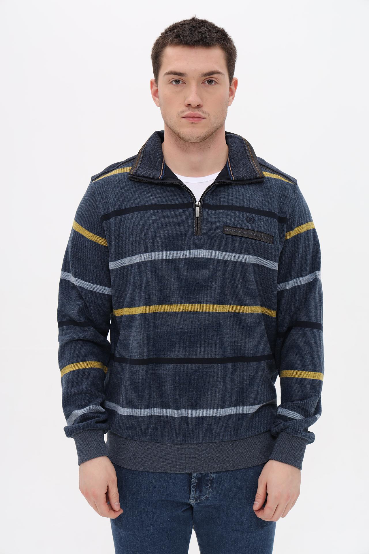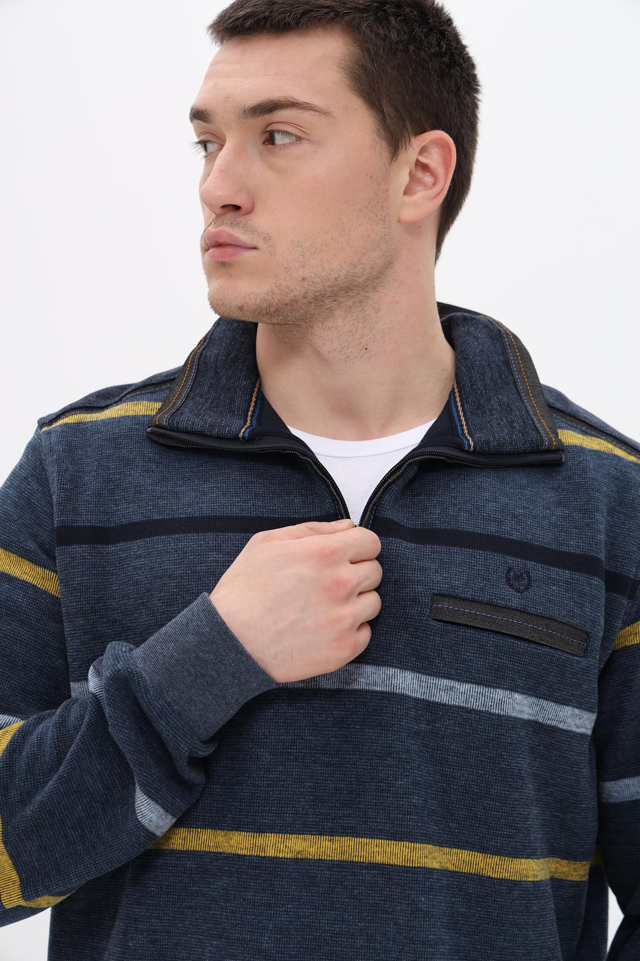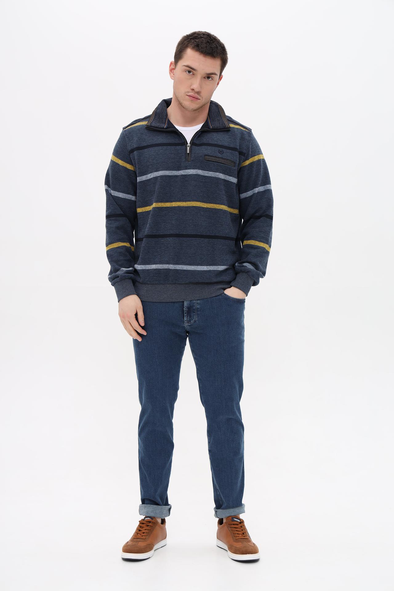 Джемпер с воротником-стойкой и удобной молнией станет отличным дополнением к вашему гардеробу. Оригинальный дизайн в полоску придает модели современный вид, подчеркивая индивидуальность.