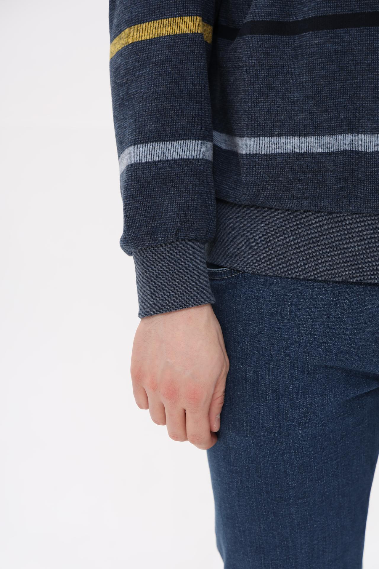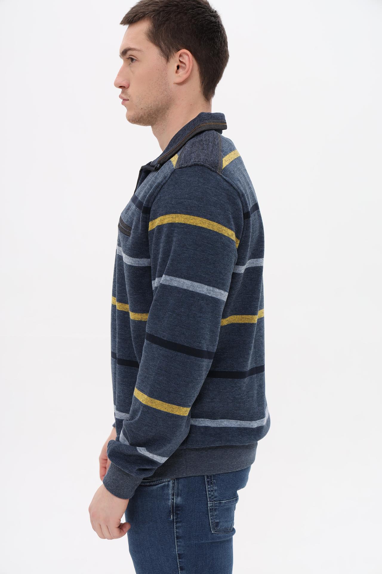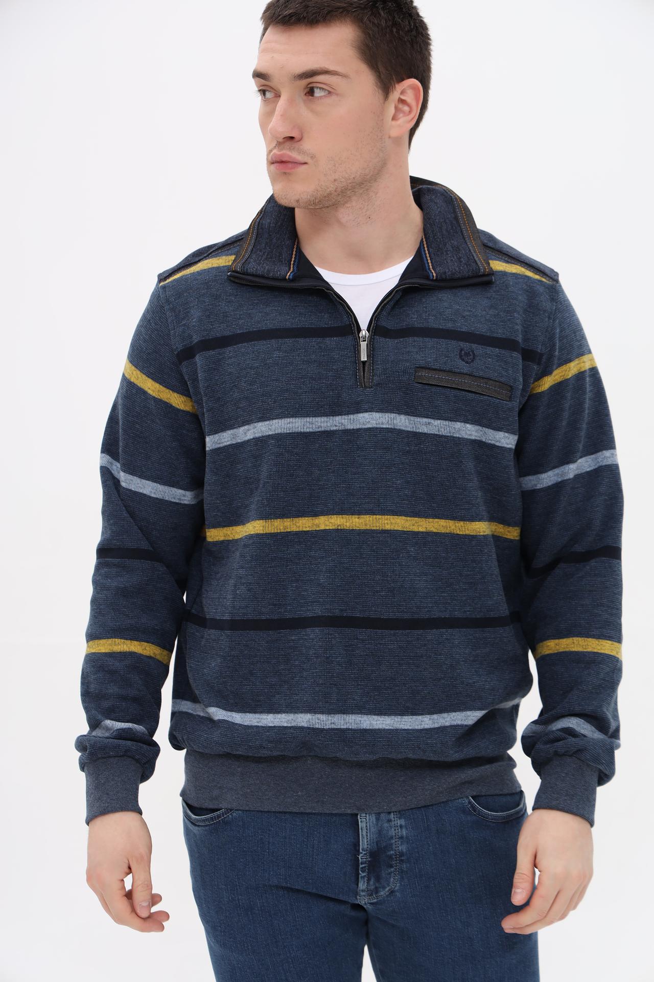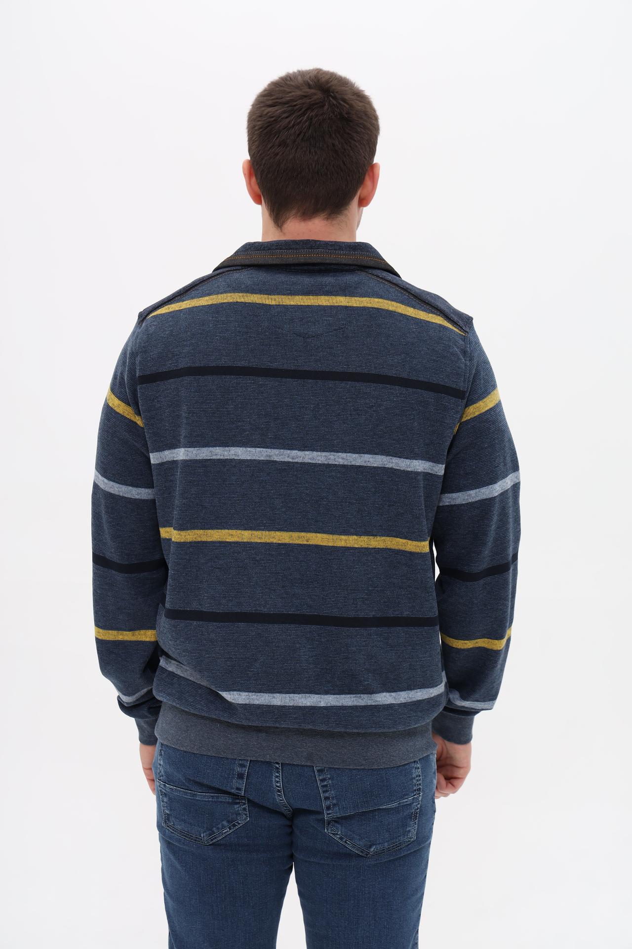 Джемпер с воротником-стойкой и удобной молнией станет отличным дополнением к вашему гардеробу. Оригинальный дизайн в полоску придает модели современный вид, подчеркивая индивидуальность.
