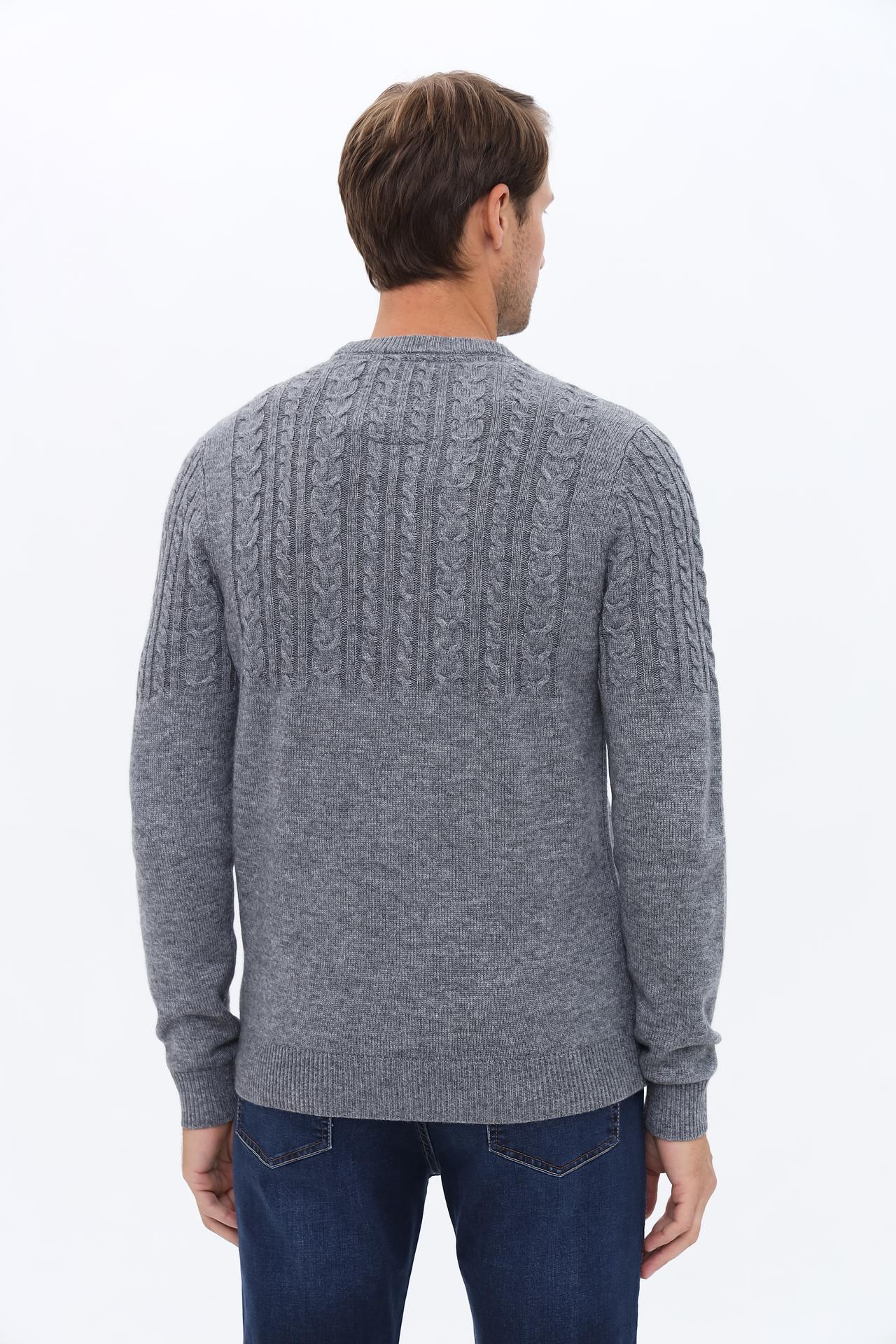 - Дизайн: Классический круглый вырез и длинные рукава дополнены выразительным узором «косы» на верхней части изделия.