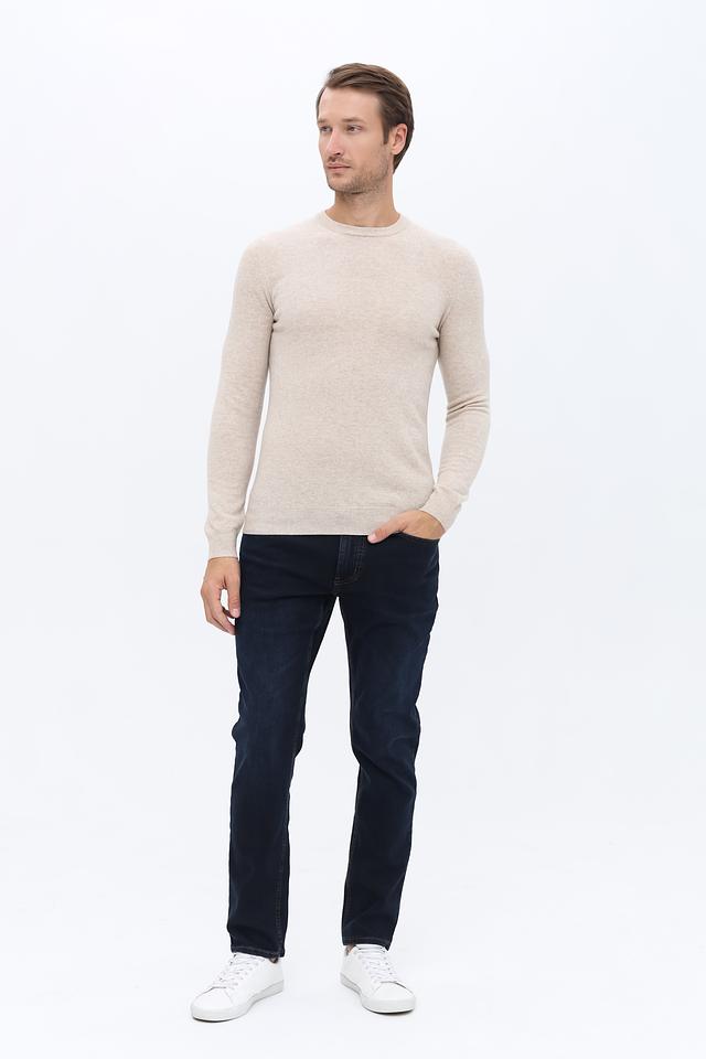 Джемпер имеет классический крой с круглым вырезом горловины и длинными рукавами. Текстура вязки однородная, без выразительных узоров, что подчеркивает лаконичный дизайн. Изделие идеально подойдет для повседневной носки, а также для создания более формальных образов.