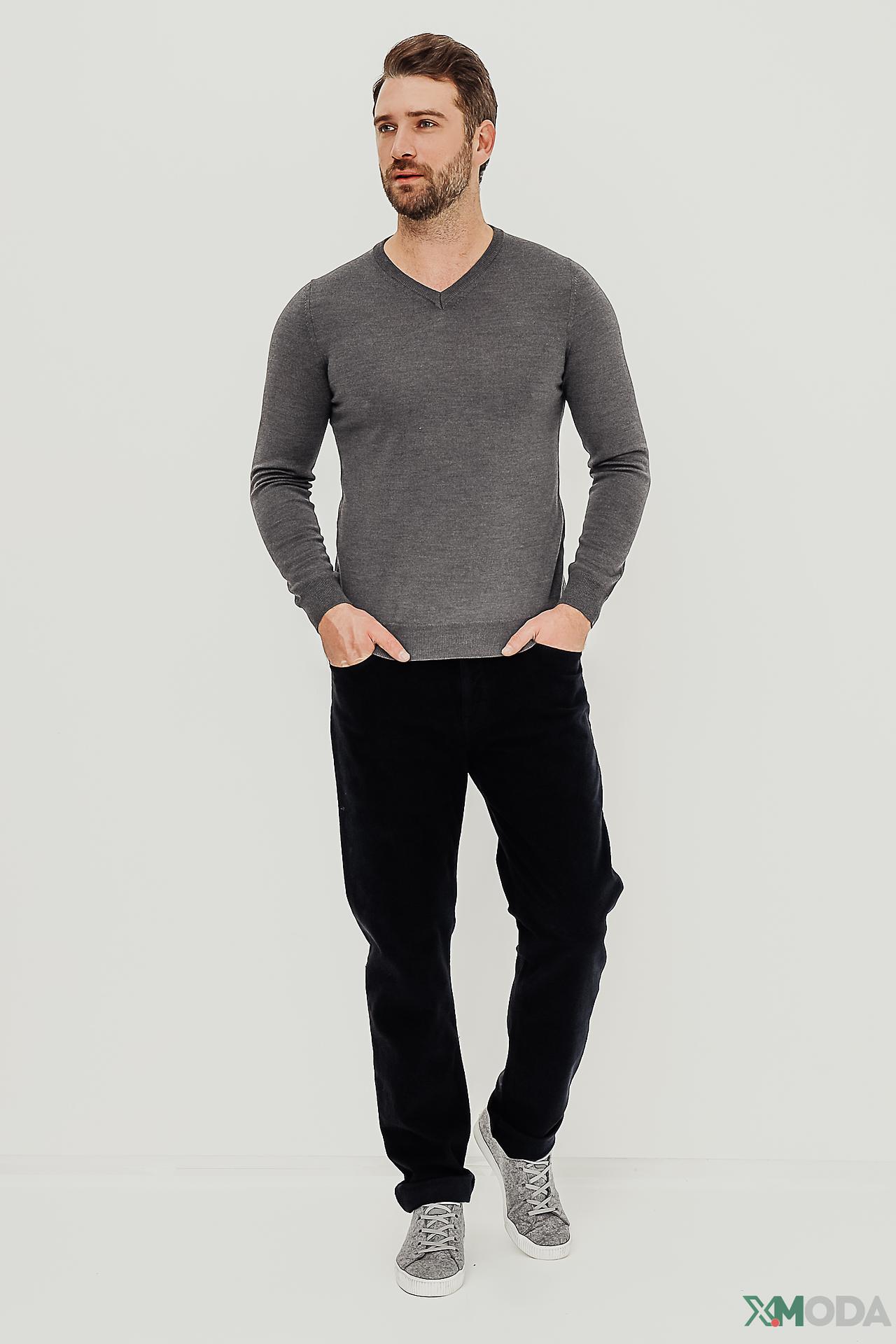 - Дизайн: Классический джемпер с V-образным вырезом и длинными рукавами. Приталенный крой выгодно подчеркивает силуэт.