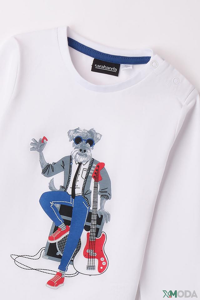 Этот стильный джемпер от Sarabanda станет отличным дополнением к гардеробу вашего мальчика. Выполненный в белом цвете, он украшен оригинальным принтом с изображением рок-музыканта – очаровательного щенка, играющего на гитаре.