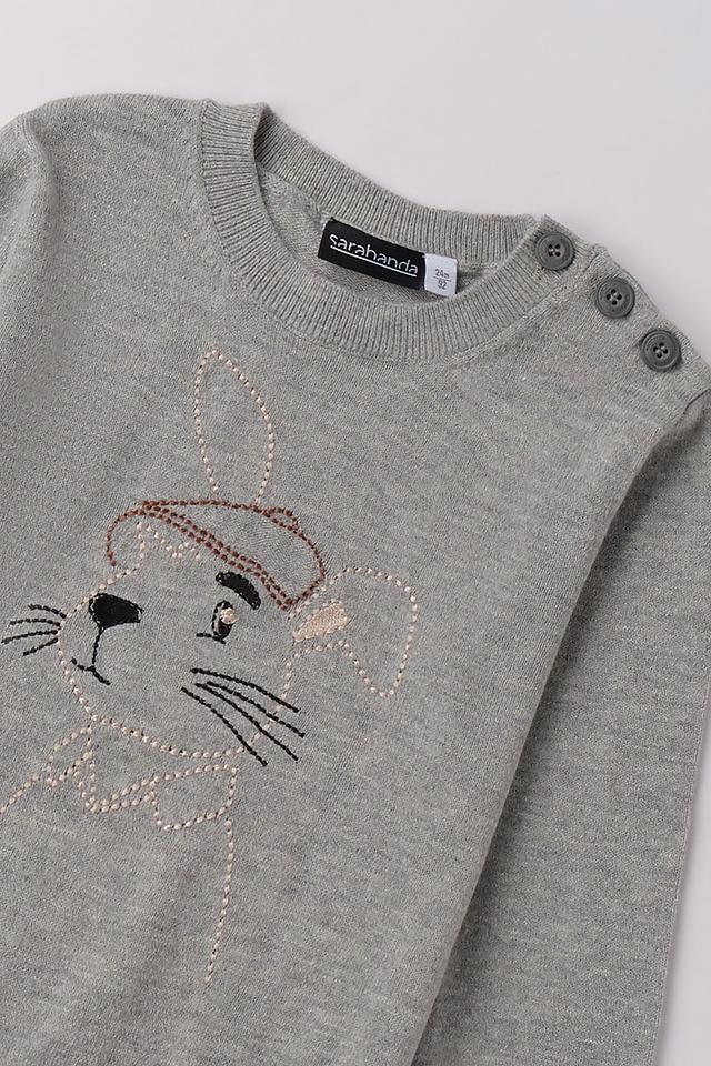 Стильный серый джемпер от Sarabanda для мальчика, украшенный забавным принтом в виде зайчика. Изготовлен из мягкого и приятного к телу сочетания хлопка, нейлона и шерсти. Состав: хлопок 55%, нейлон 40%, шерсть 5%