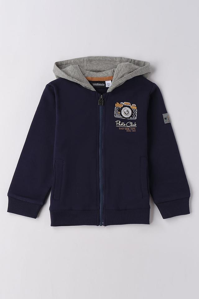 Синяя толстовка от Sarabanda для мальчиков с ярким принтом в виде фотоаппарата. Изготовлена из мягкого хлопка с добавлением эластана для комфорта и свободы движений. Состав: хлопок 95%, эластан 5%