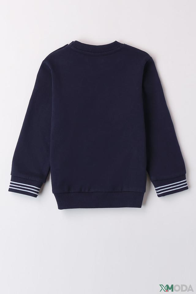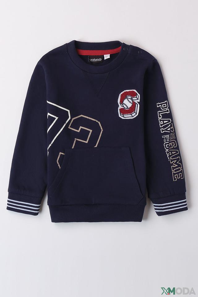 Джемпер от Sarabanda тёмно-синего цвета с ярким принтом в виде бейсбольного мяча и надписью "PLAY THE GAME". Удобный крой и мягкий хлопок обеспечат комфорт вашему ребёнку. Состав: хлопок 100%
