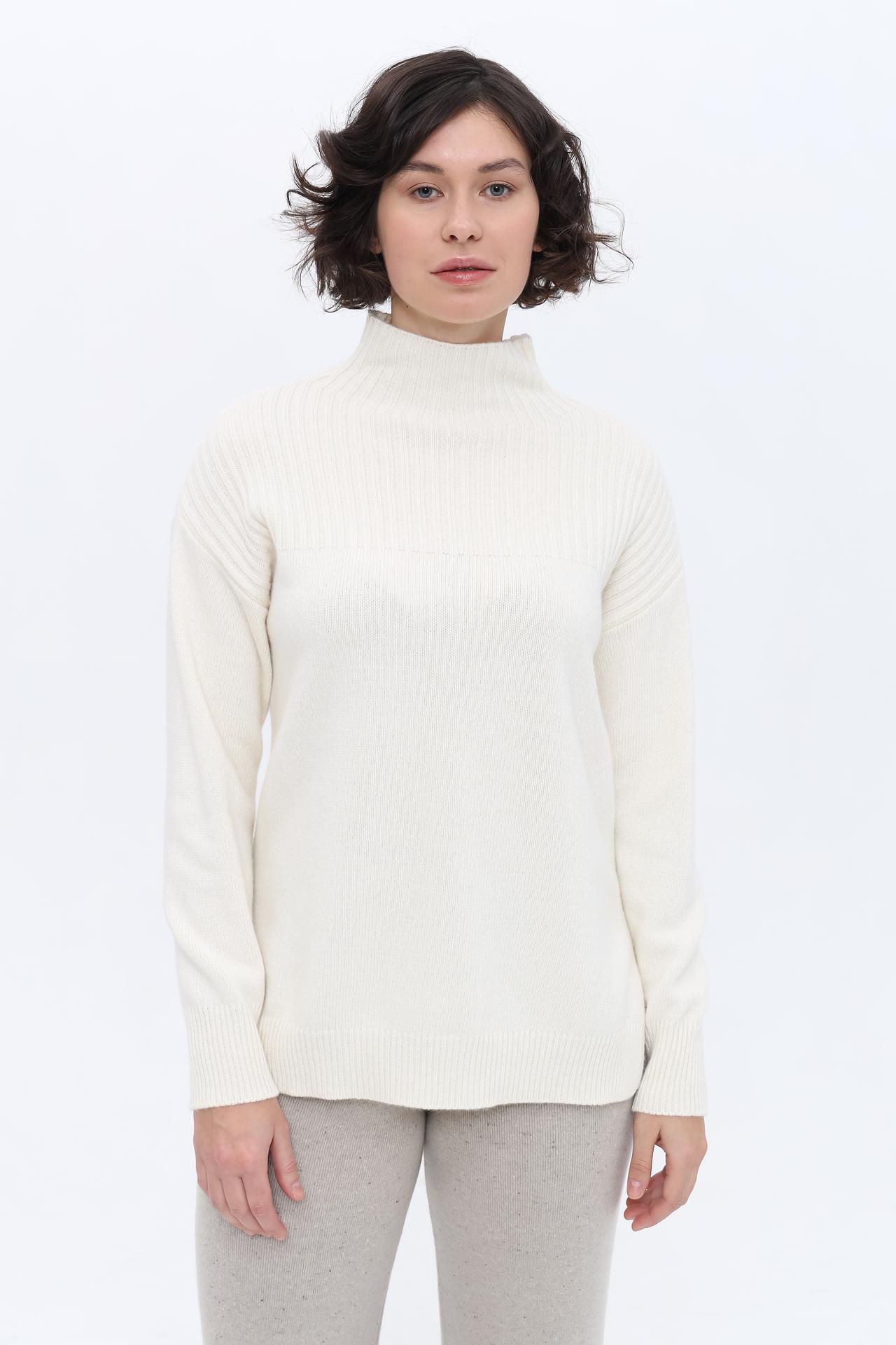 Джемпер Shade белый, воротник-стойка, ребристая вязка