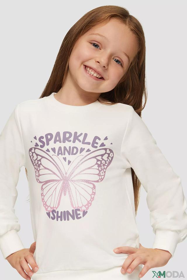 - Яркий дизайн: Украшен привлекательным принтом в виде сияющей бабочки с надписью "SPARKLE AND SHINE", который придает образу волшебства и уникальности.