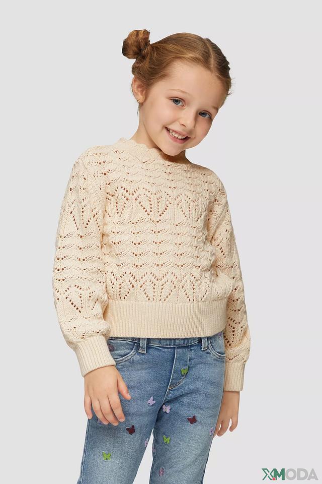 Джемпер s.Oliver молочного цвета – уютная и стильная модель для девочки. Изготовлен из мягкого хлопка с добавлением полиакрила, что обеспечивает комфорт и легкость в уходе. Ажурный узор придает изделию нежность и оригинальность. Состав: хлопок 50%, полиакрил 50%