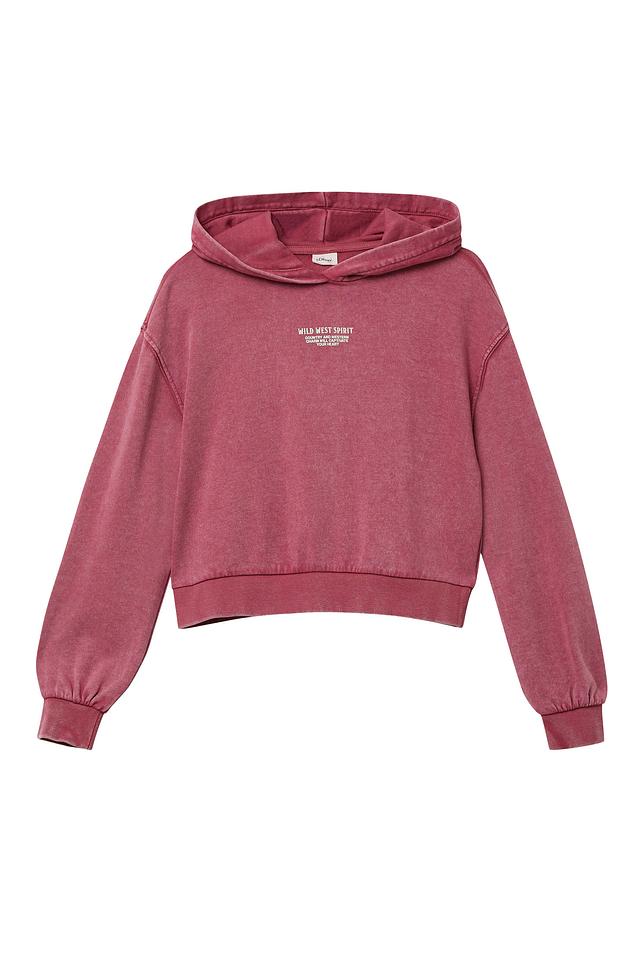 Детская толстовка s.Oliver розового цвета с капюшоном и оригинальным принтом. Изготовлена из мягкого хлопка с добавлением полиэстера для комфорта и долговечности. Состав: хлопок 90%, полиэстер 10%