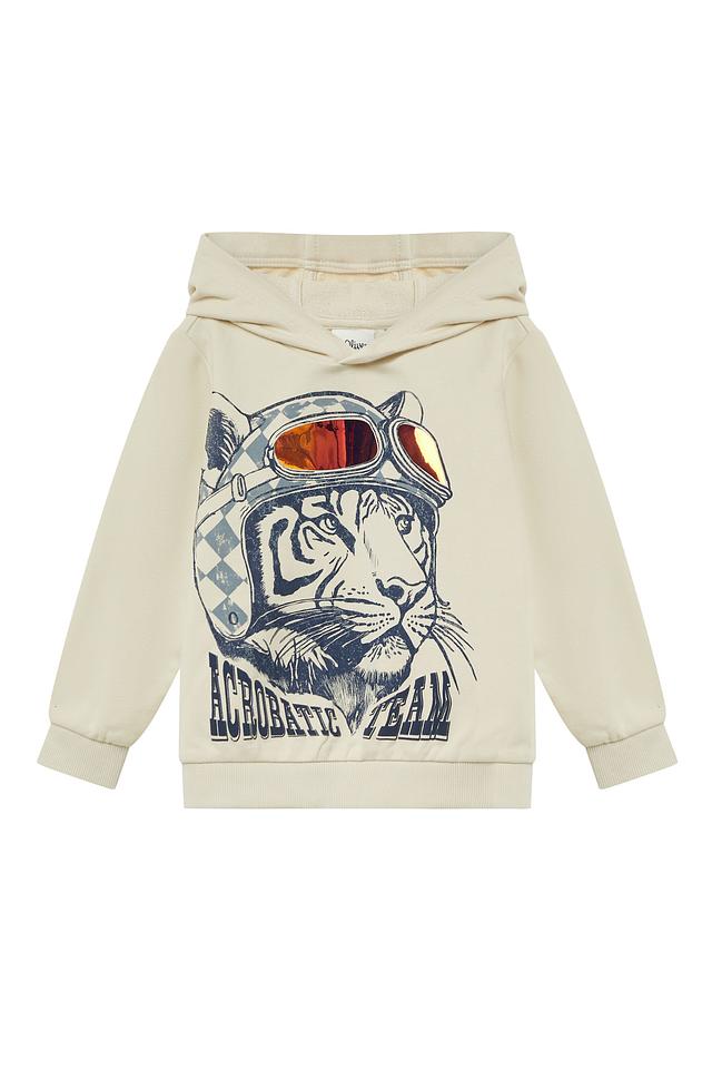 Бежевая толстовка s.Oliver с оригинальным принтом тигра в летной экипировке — яркий акцент в детском гардеробе. Изготовлена из мягкого хлопка с добавлением полиэстера для комфорта и долговечности. Состав: хлопок 90%, полиэстер 10%