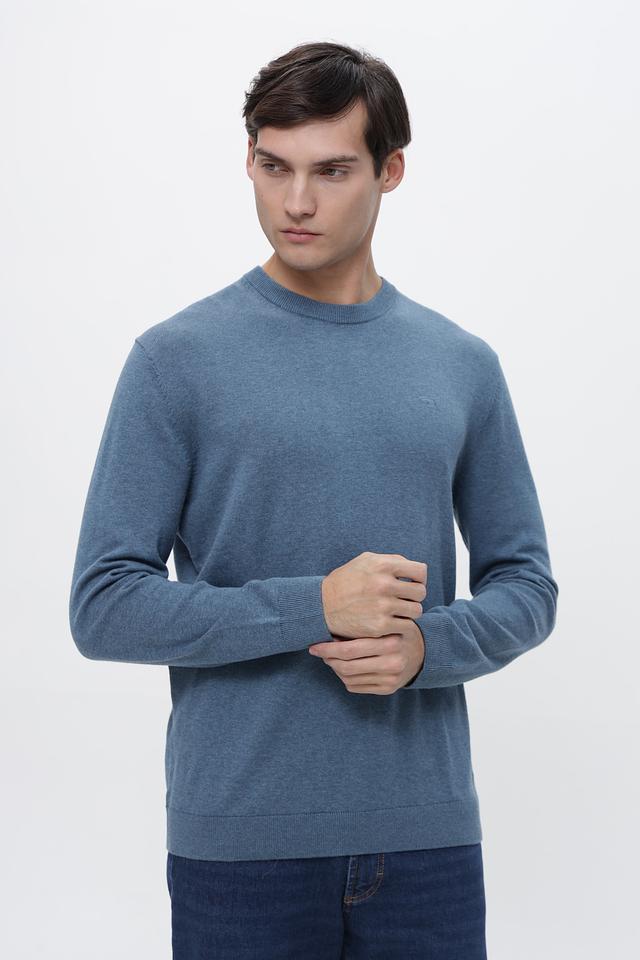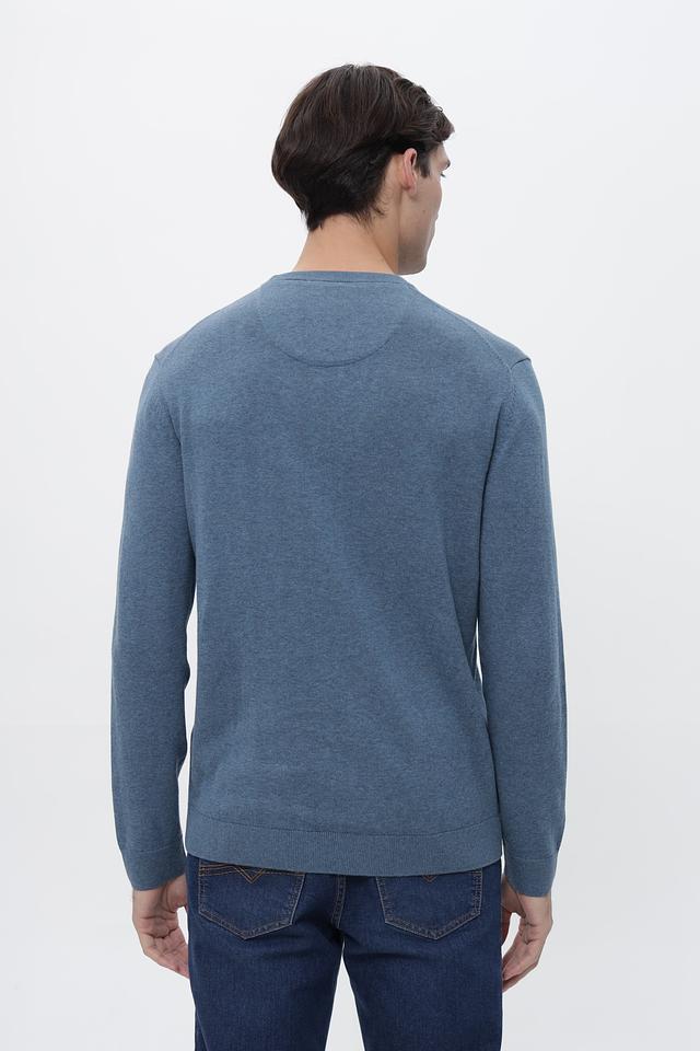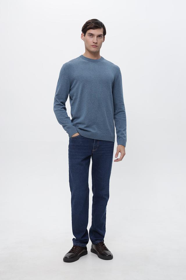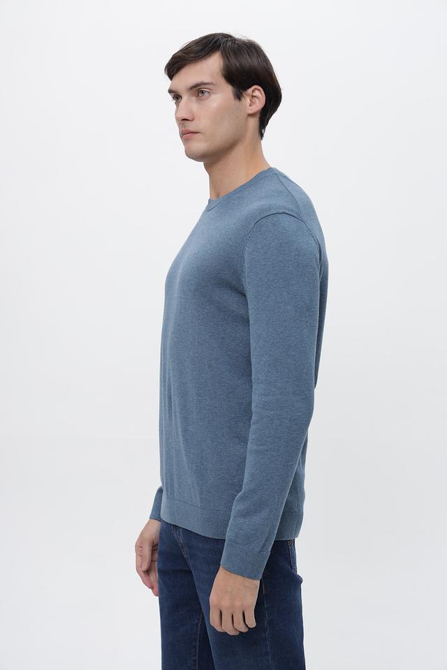 Джемпер имеет классический крой с круглым вырезом горловины и длинными рукавами. Его спокойный голубой цвет легко сочетается с различными элементами гардероба, позволяя создавать разнообразные образы – от повседневных до более формальных.