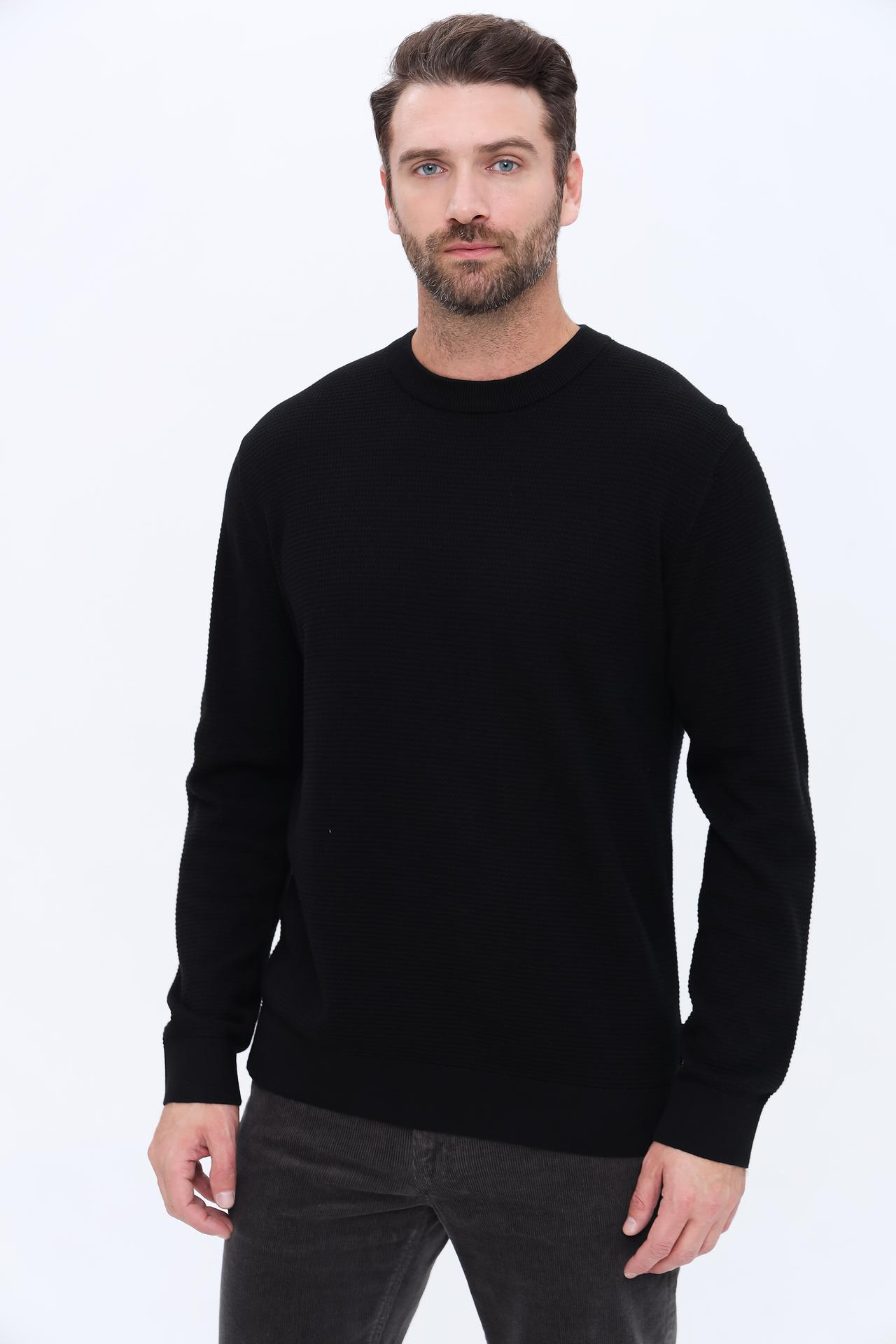 Стильный джемпер от Tom Tailor — идеальное дополнение к вашему повседневному гардеробу. Модель выполнена из 100% хлопка, что обеспечивает комфорт и воздухопроницаемость в течение всего дня. Классический чёрный цвет и лаконичный дизайн делают этот джемпер универсальным элементом, который легко сочетается с различными образами.