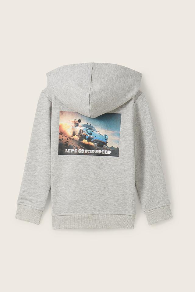 Детская толстовка Tom Tailor серого цвета с молнией и буквой "S" на груди. Удобная модель на молнии с капюшоном и ярким принтом на спине станет отличным дополнением к гардеробу юного модника. Состав: хлопок 95%, вискоза 5%