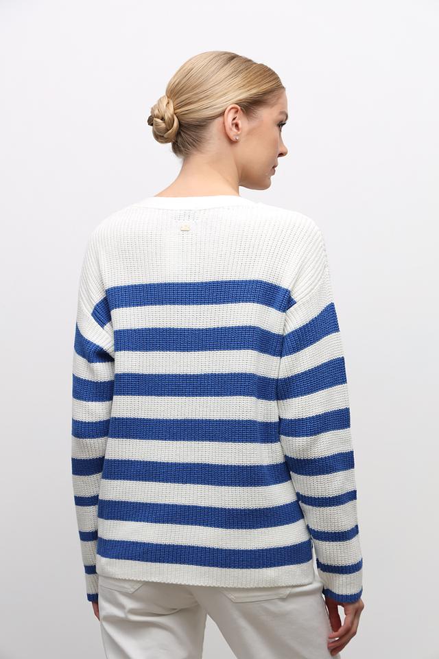 Этот стильный джемпер от Joop! станет отличным дополнением к вашему гардеробу. Модель выполнена в классическом дизайне с широкими полосами синего и белого цветов.