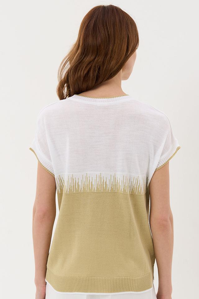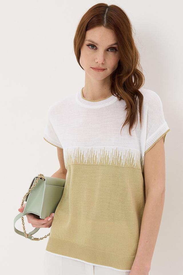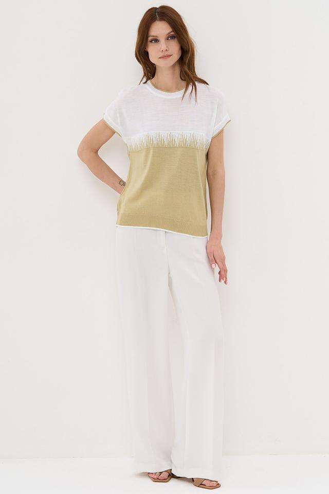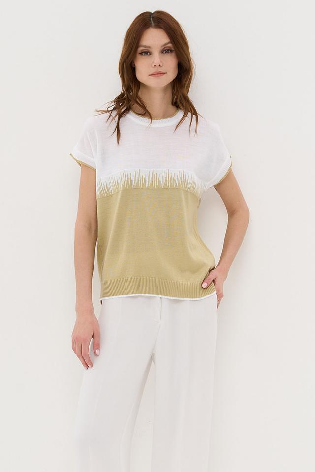 Джемпер VAY оливкового цвета с короткими рукавами и оригинальным декором в виде бахромы. Модель выполнена из мягкого трикотажа и имеет свободный крой, что обеспечивает комфорт и удобство в носке. Состав: