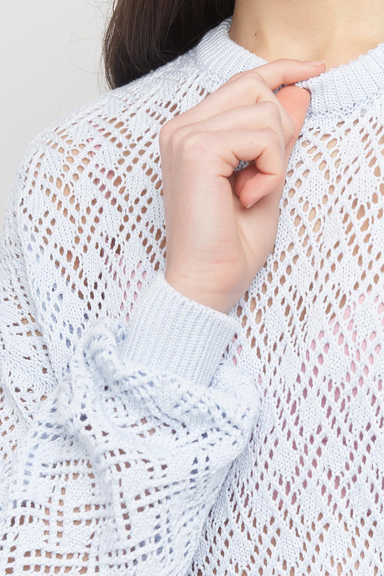 Модель выполнена в красивом голубом цвете. Ажурный узор добавляет изделию легкости и воздушности.