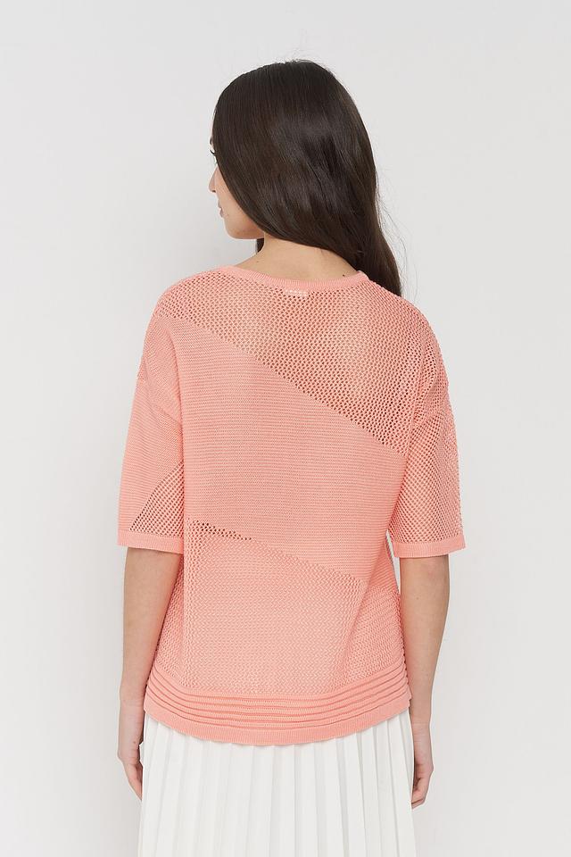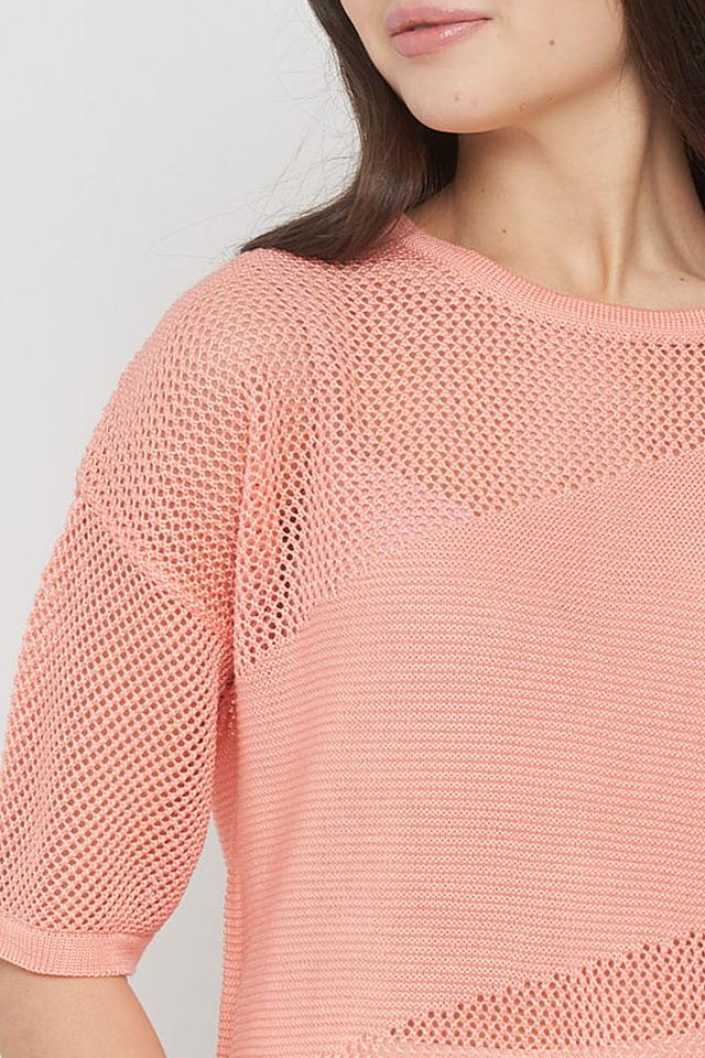 Розовый джемпер VAY с коротким рукавом и ажурной вставкой станет отличным дополнением к вашему гардеробу. Изделие выполнено из мягкой пряжи, обеспечивающей комфорт в носке. Состав: