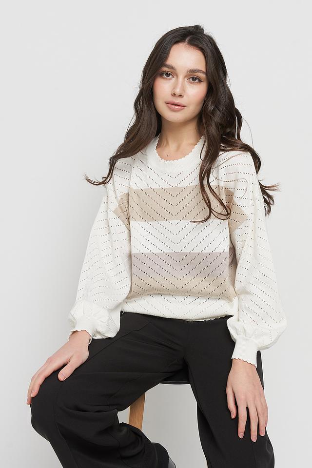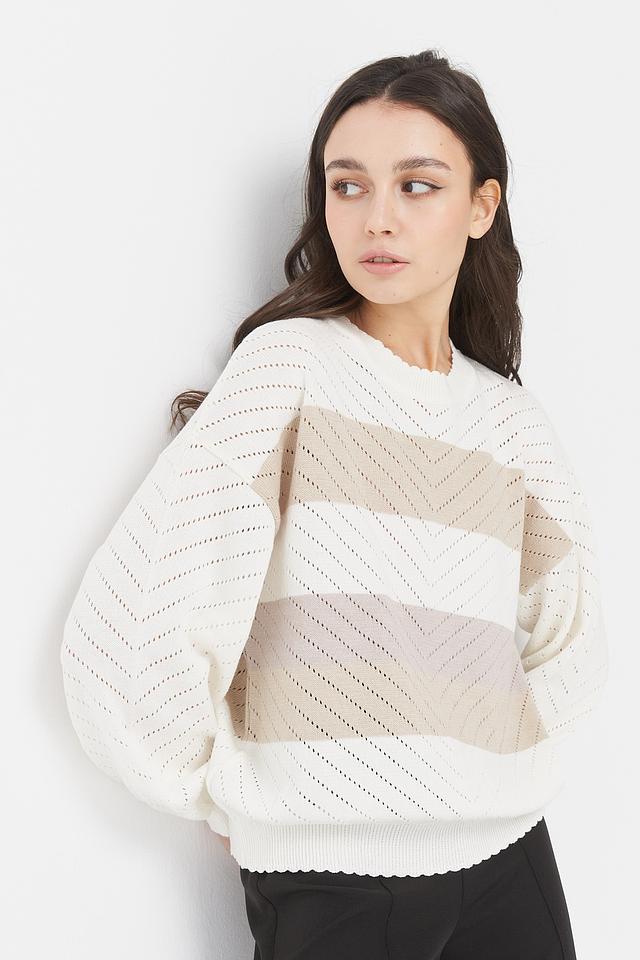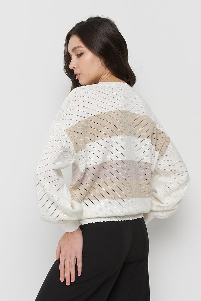 Белый джемпер от VAY с геометрическим узором и объёмными рукавами станет стильным дополнением к вашему гардеробу. Изготовлен из мягкого хлопка с добавлением пан для комфорта и сохранения формы. Состав: хлопок 50%, пан 50%