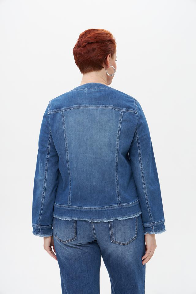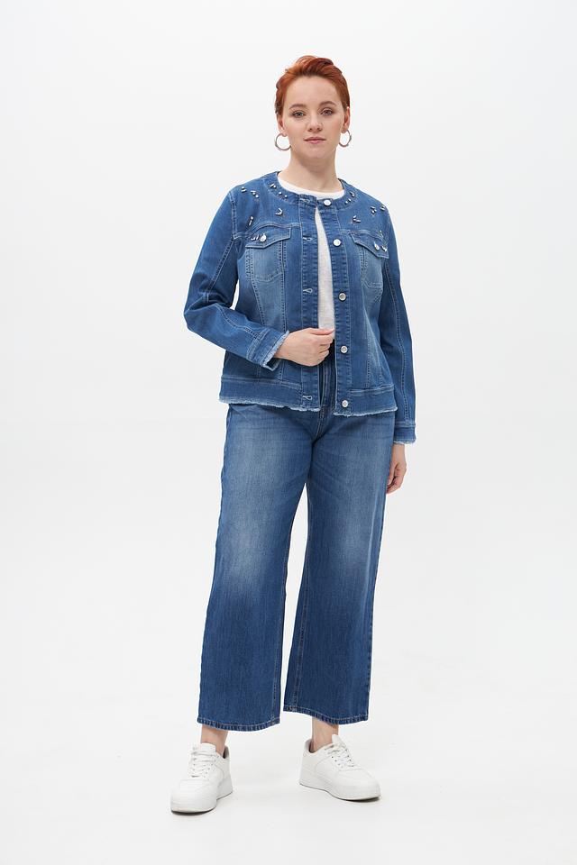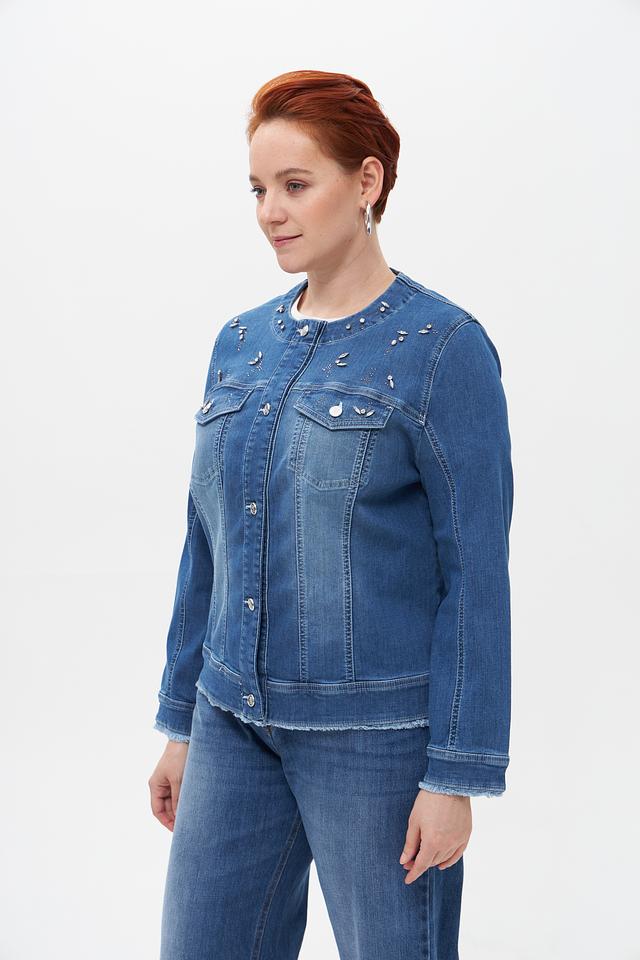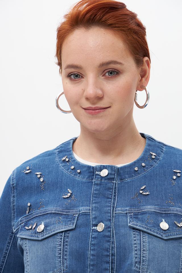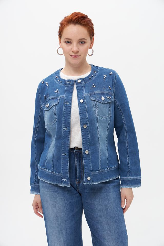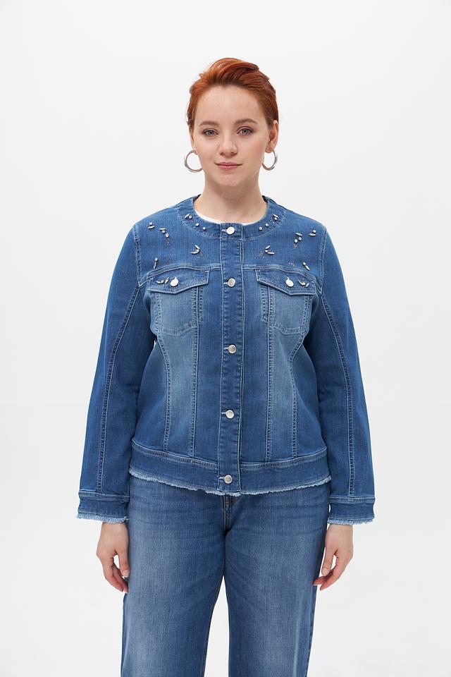 Синий джинсовый жакет Rabe collection с декоративной вышивкой. Изготовлен из хлопка с добавлением полиэстера и эластана для комфорта и износостойкости. Модель застегивается на пуговицы. Состав: хлопок 92%, полиэстер 6%, эластан 2%