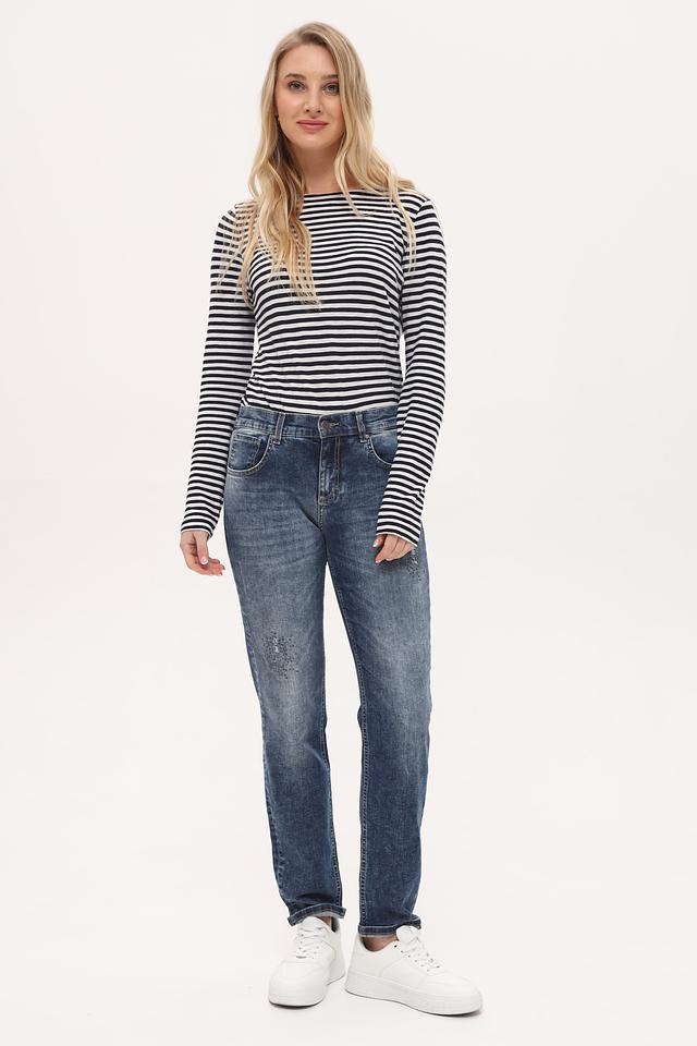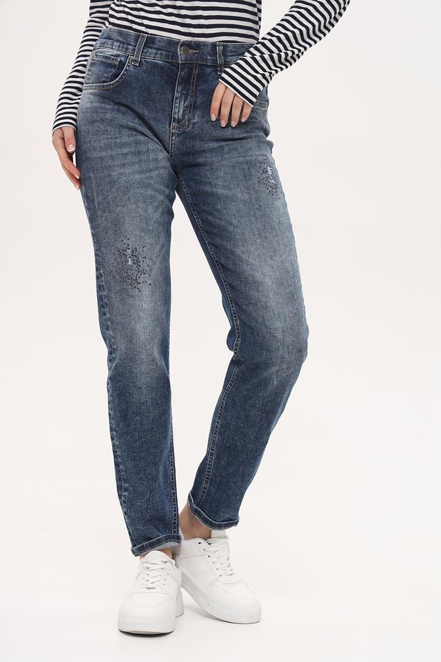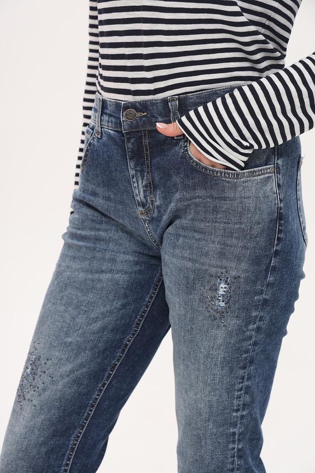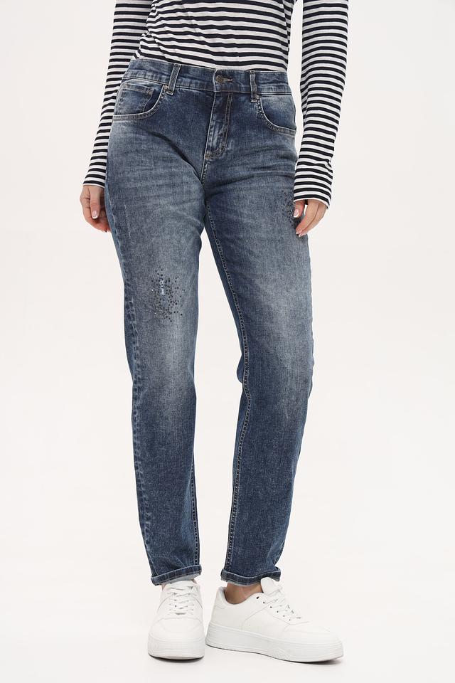 Синие джинсы Angels в стиле boyfriend из хлопка с добавлением полиэстера и эластана. Модель с эффектом потертости и декоративными элементами. Обеспечивают комфорт и свободу движений. Состав: хлопок 92%, полиэстер 6%, эластан 2%