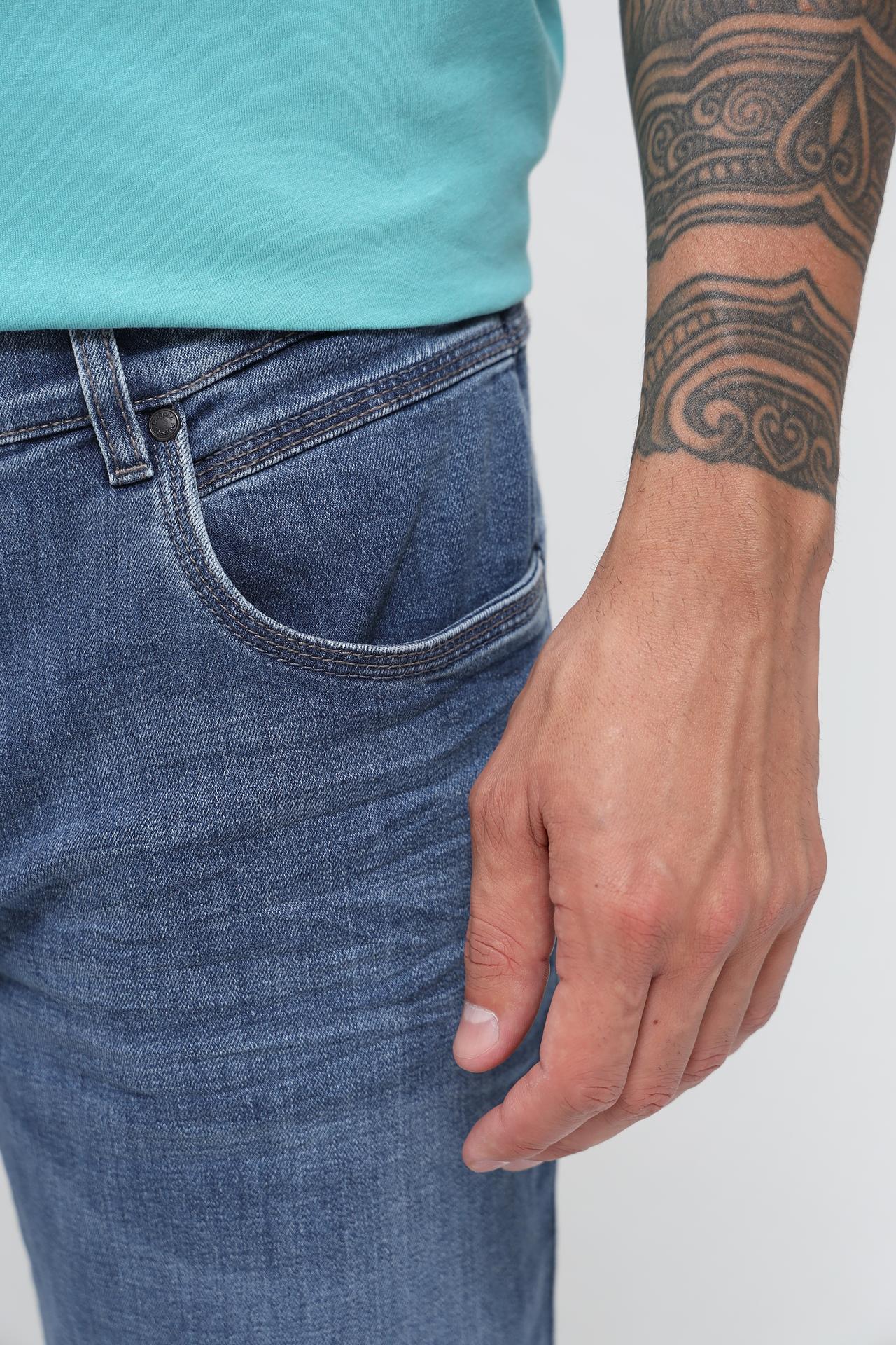 - Идеальная посадка: Эластан в составе обеспечивает эластичность, что делает мужские джинсы максимально удобными, адаптируясь к фигуре и не сковывая движений.