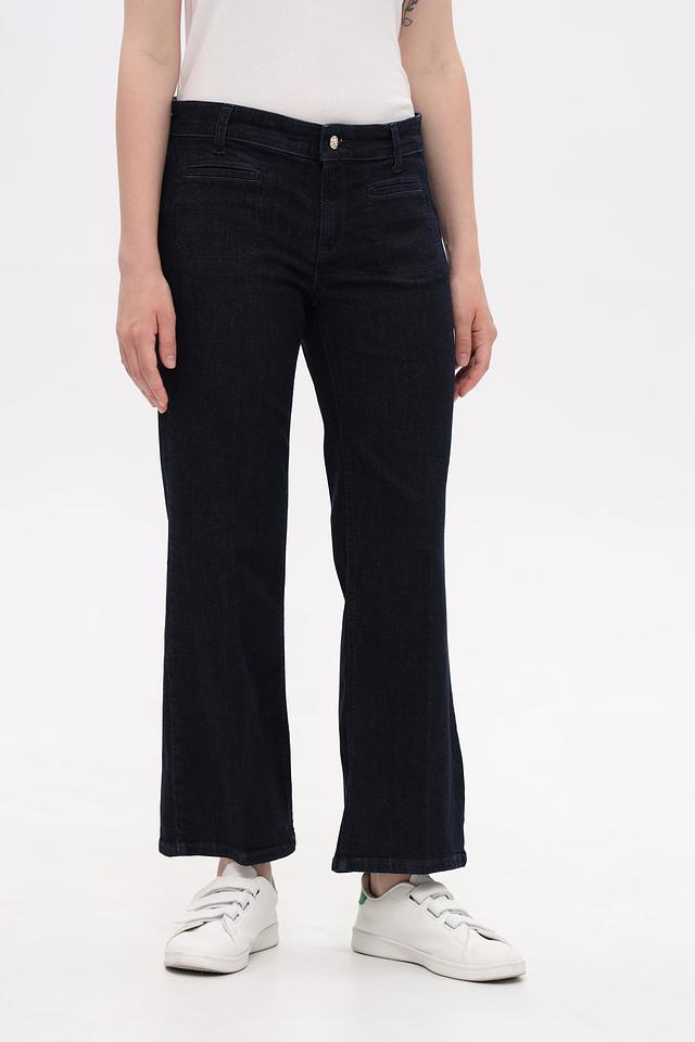 Женские джинсы Cambio классического кроя, выполнены из плотного денима насыщенного темно-синего цвета. Модель характеризуется высокой посадкой, подчеркивающей талию, и силуэтом клеш, визуально удлиняющим ноги.