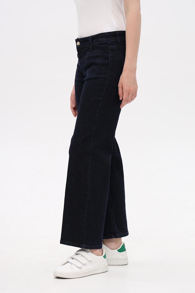 Джинсы имеют традиционную пятикарманную конструкцию: два боковых кармана спереди, два накладных кармана сзади и один врезной карман для мелочи. Застежка – на металлическую пуговицу и молнию. На задних карманах присутствует декоративная металлическая надпись с логотипом бренда.