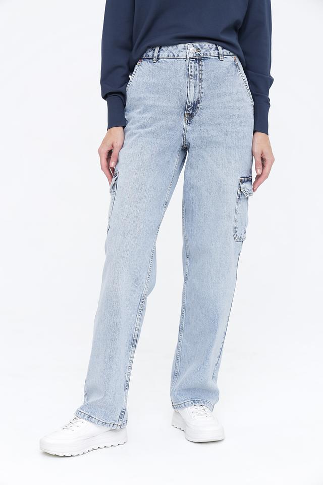 Светло-голубые джинсы карго от Oui — удобная и стильная модель с накладными карманами. Прямой крой и эффект потертости придают джинсам непринужденный вид. Состав: хлопок 99%, эластан 1%