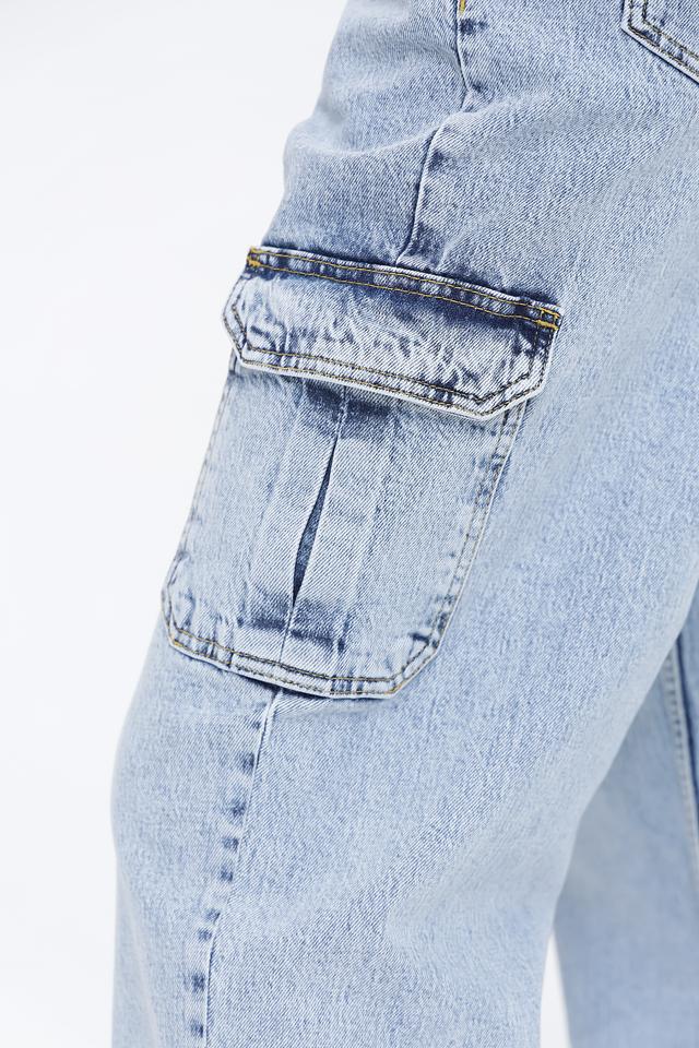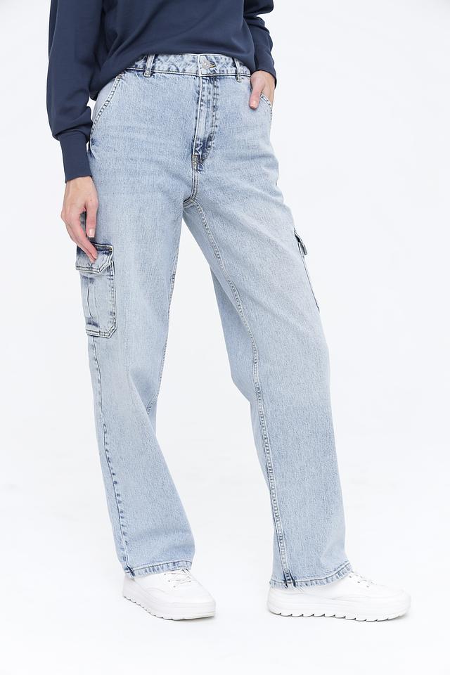 Джинсы имеют прямой крой, который обеспечивает комфортную посадку. Наличие накладных карманов по бокам добавляет функциональности и подчеркивает стиль карго. Застежка на молнию и пуговицу.