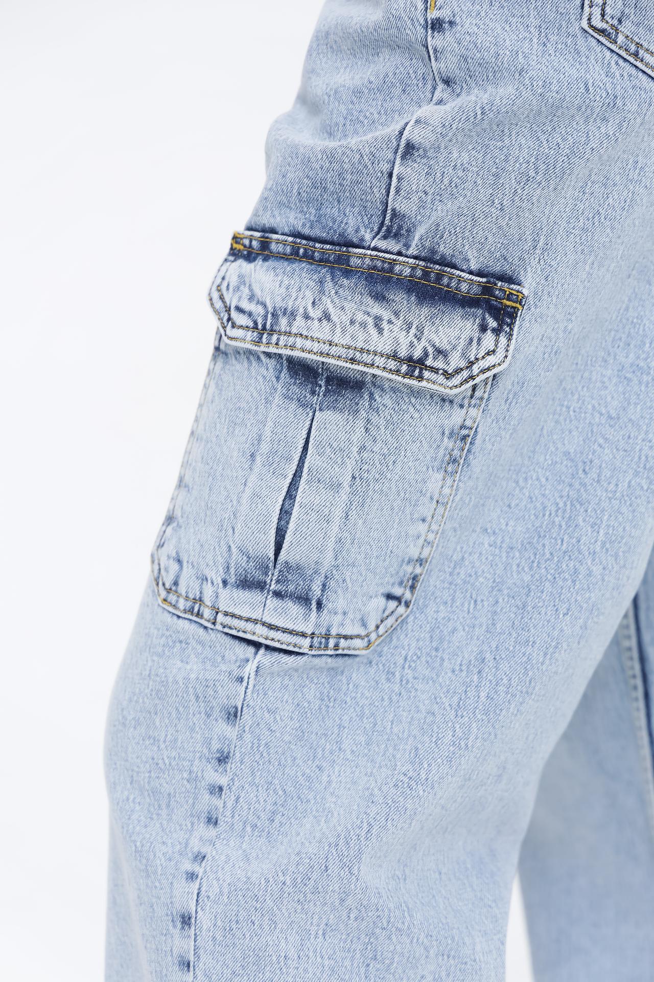 - Стильный дизайн: Светло-голубой цвет джинсов легко сочетается с различными элементами гардероба, позволяя создавать разнообразные образы.