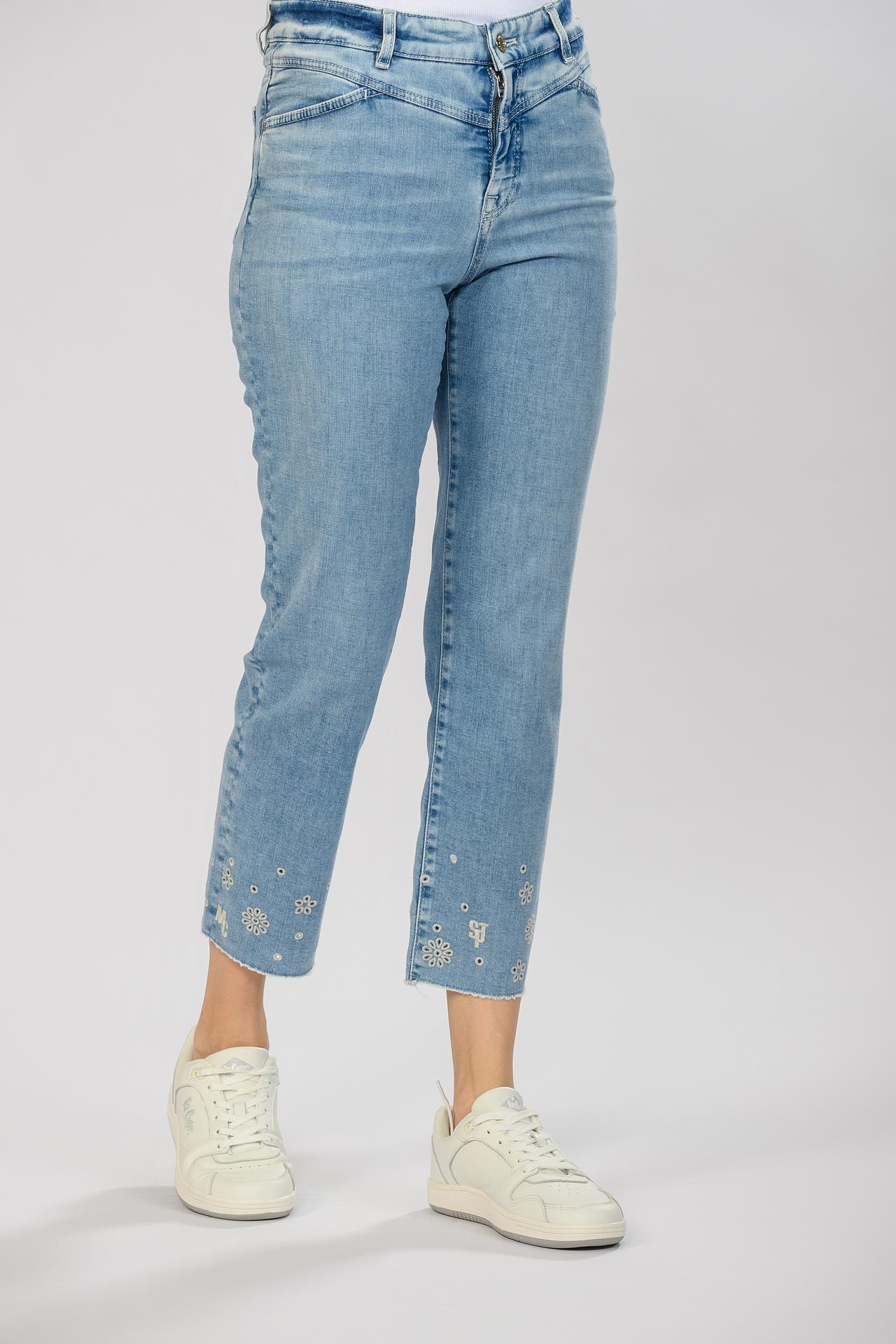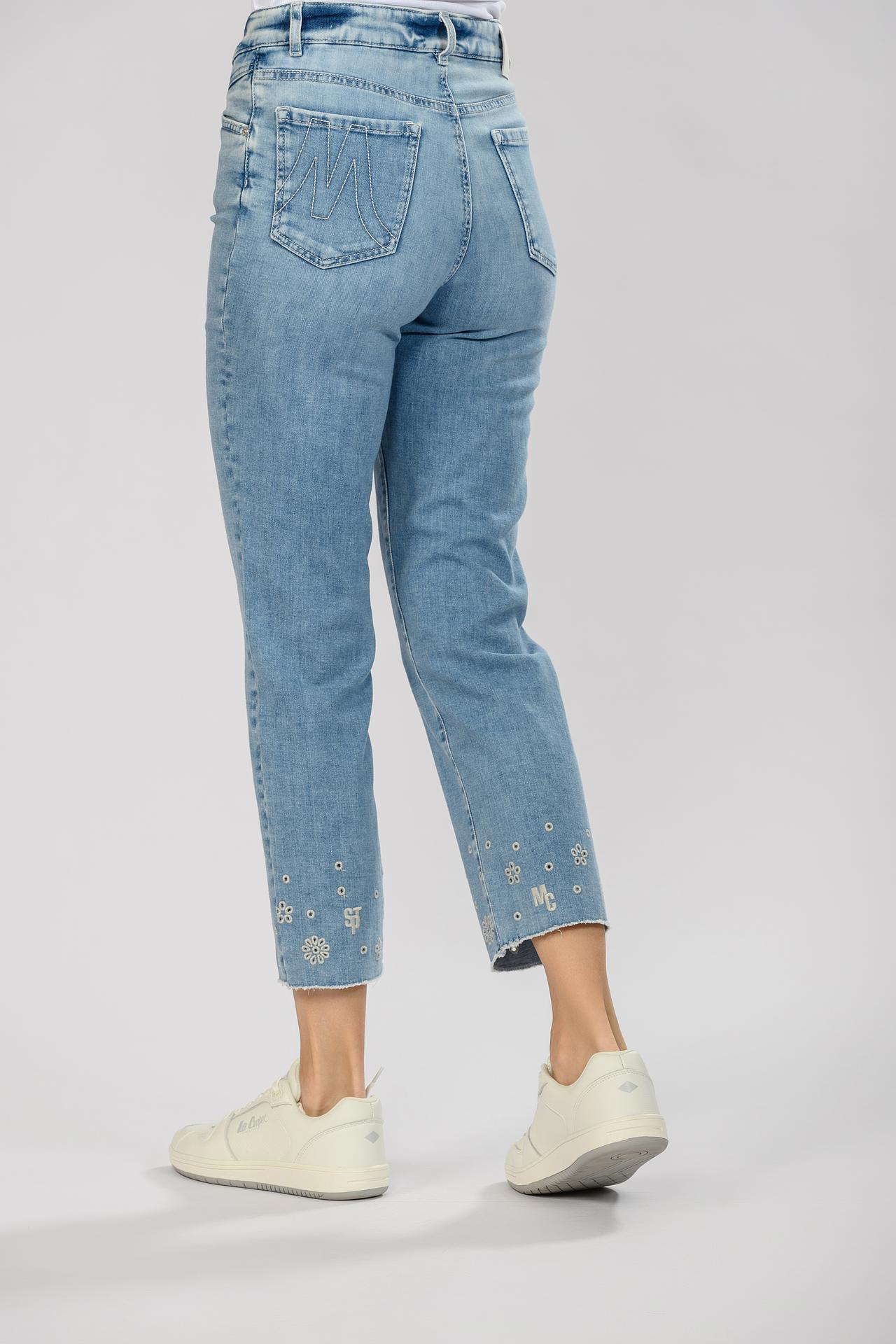 Джинсы Marc Cain голубые, с ажурной вышивкой на кромке
