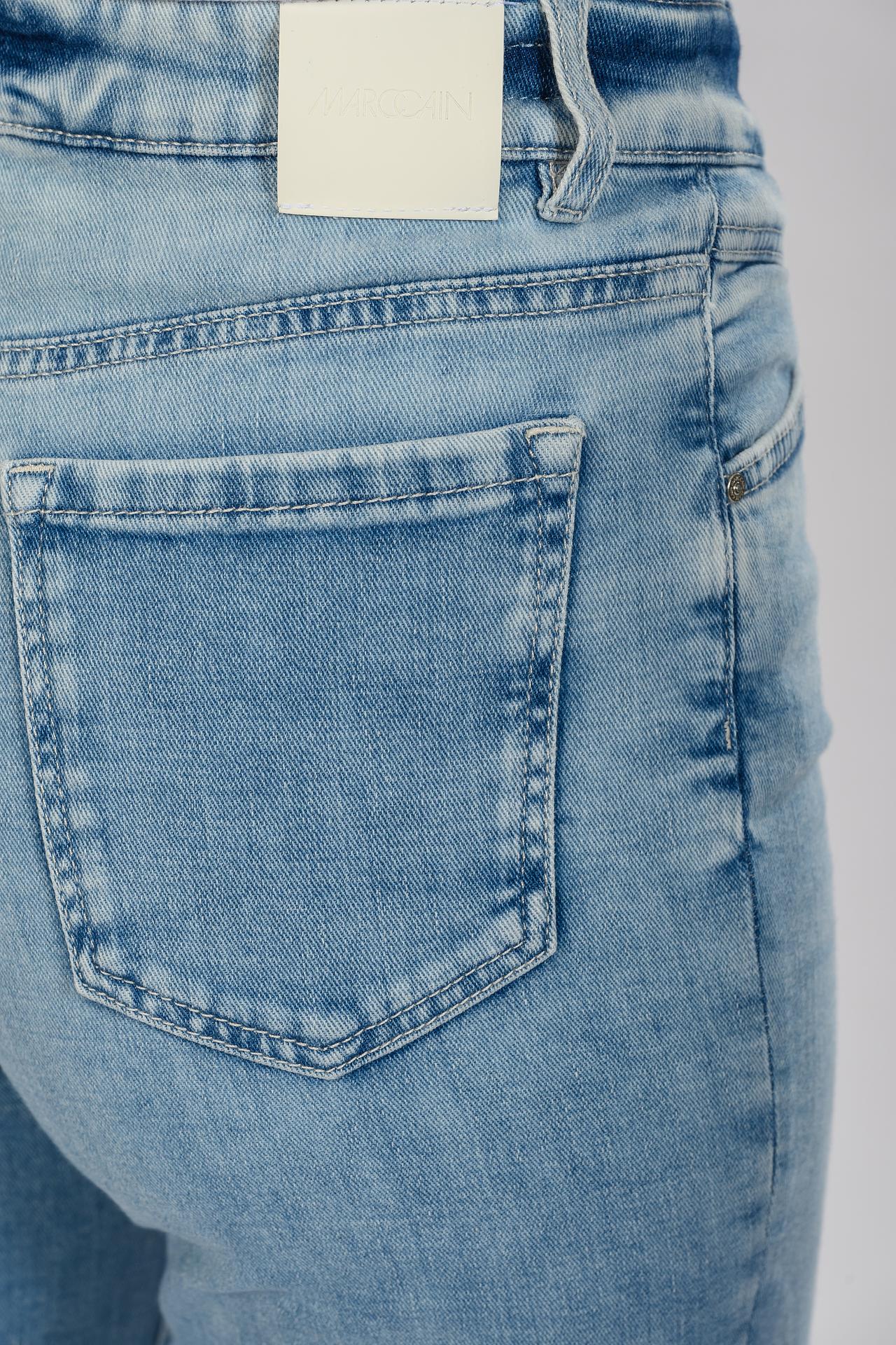 - Универсальность стиля: Голубой цвет денима и актуальный крой позволяют легко комбинировать эти модные джинсы Marc Cain с разнообразными топами, создавая как повседневные, так и более нарядные образы.