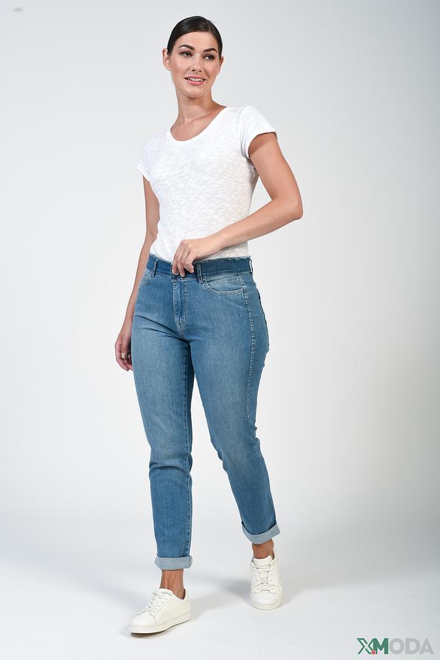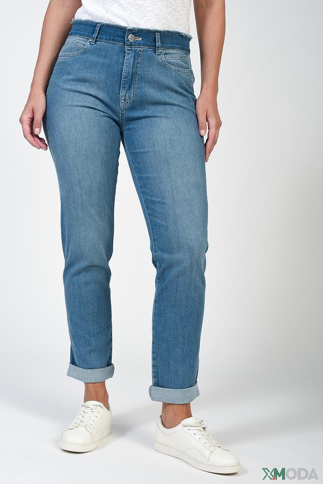 Женские джинсы Marc Cain голубого цвета с эффектом потертости и завышенной талией. Модель выполнена из качественного хлопка с добавлением эластана для комфортной посадки и свободы движений. Состав: хлопок 98%, эластан 2%