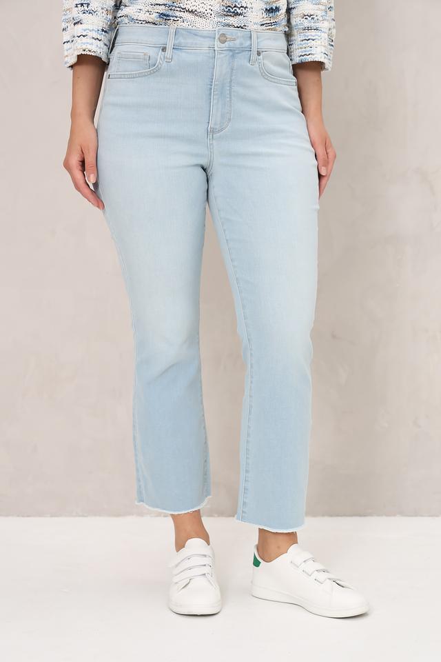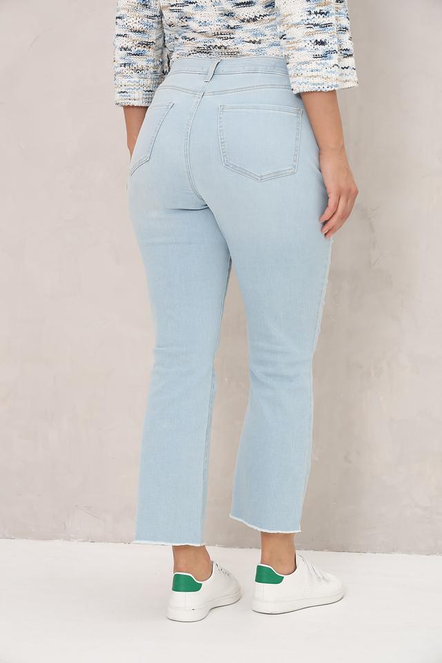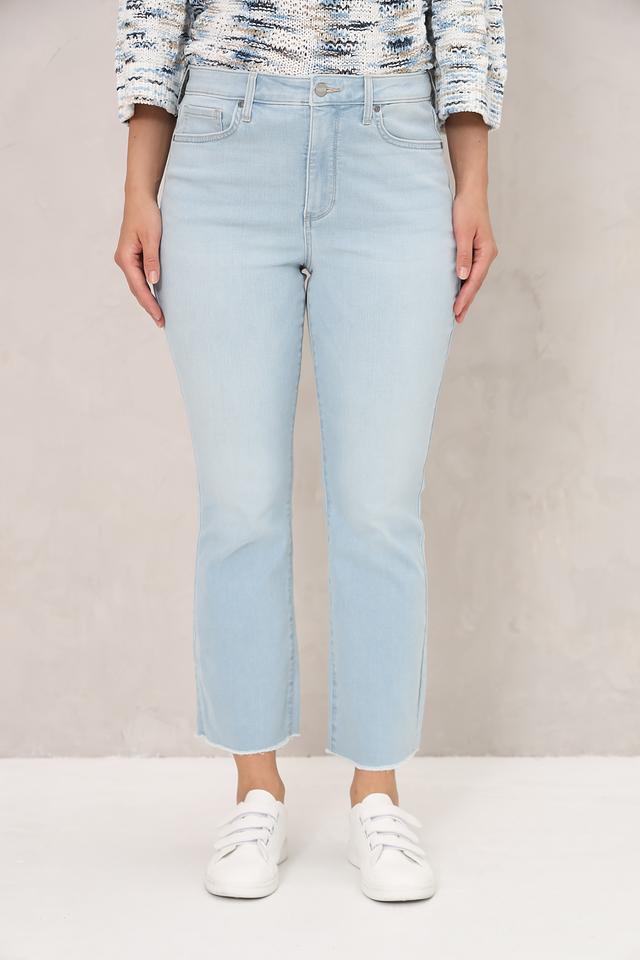 Светло-голубые джинсы NYDJ с завышенной талией и укороченным прямым кроем. Модель выполнена из качественного денима с добавлением эластана для комфортной посадки и свободы движений. Состав: хлопок 72%, полиэстер 26%, эластан 2%