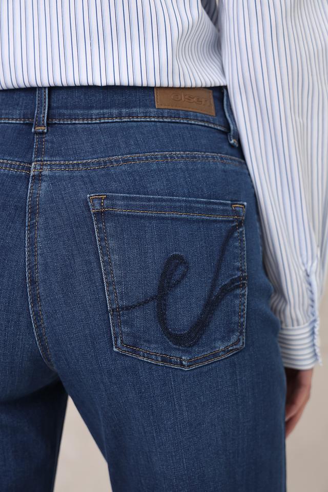 Застежка на молнию и пуговицу, а также пять карманов — два спереди, два сзади и один небольшой карман для мелочи. На задних карманах выполнены декоративные стежки в виде логотипа бренда. Джинсы Olsen — это отличный выбор для тех, кто ценит комфорт, качество и стиль.
