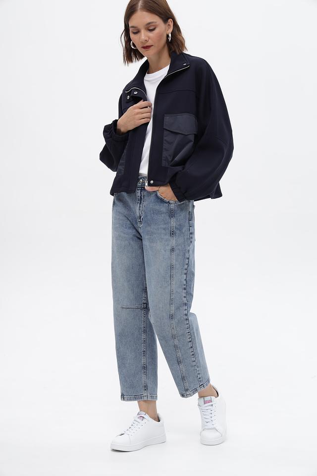 Женские джинсы Oui голубого цвета с широким кроем и декоративными швами. Модель выполнена из хлопка с добавлением эластана для комфорта и свободы движений. Отличаются стильным дизайном и удобной посадкой. Состав: хлопок 99%, эластан 1%