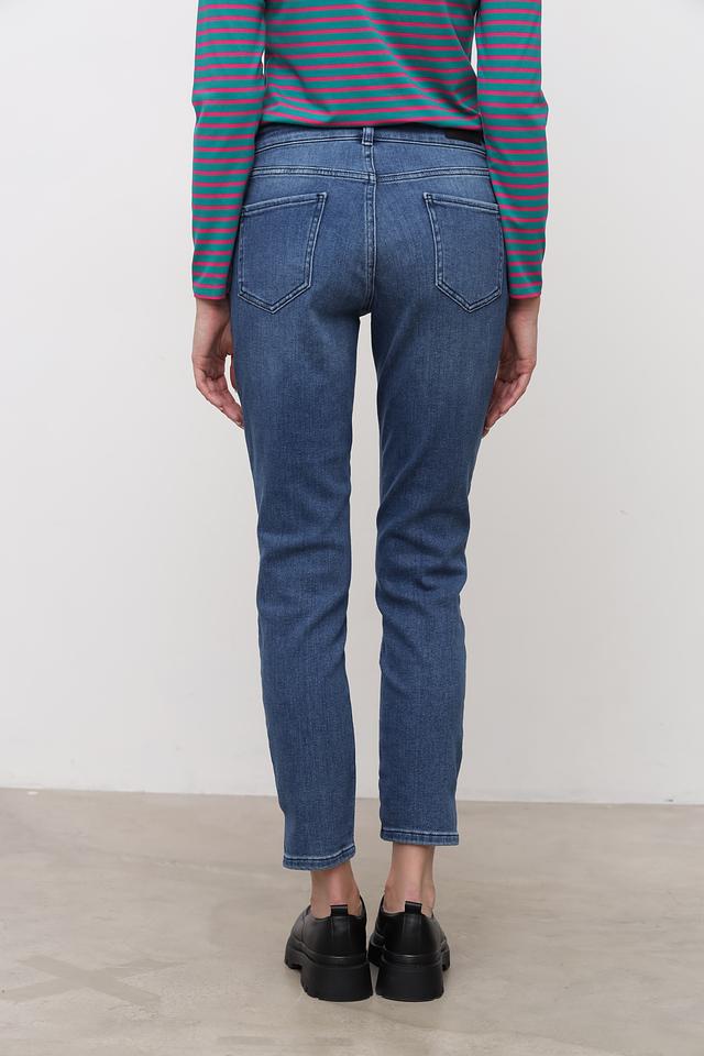 Представляем стильные джинсы от бренда Oui. Эта модель выполнена в классическом синем цвете и имеет прямой крой, который подчеркнет достоинства фигуры.