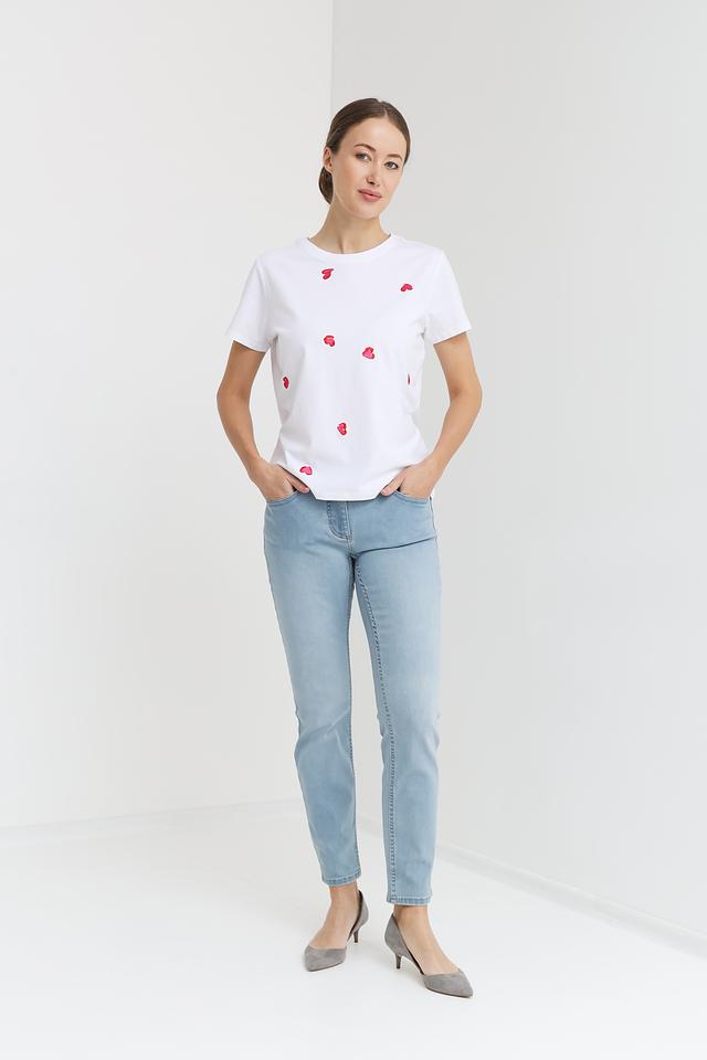 Хлопок обеспечивает комфорт и воздухопроницаемость, полиэстер придает прочность и износостойкость, спандекс – эластичность и свободу движений, а район – мягкость и приятные тактильные ощущения. Эти джинсы идеально подойдут для создания различных образов, от повседневных до более элегантных.