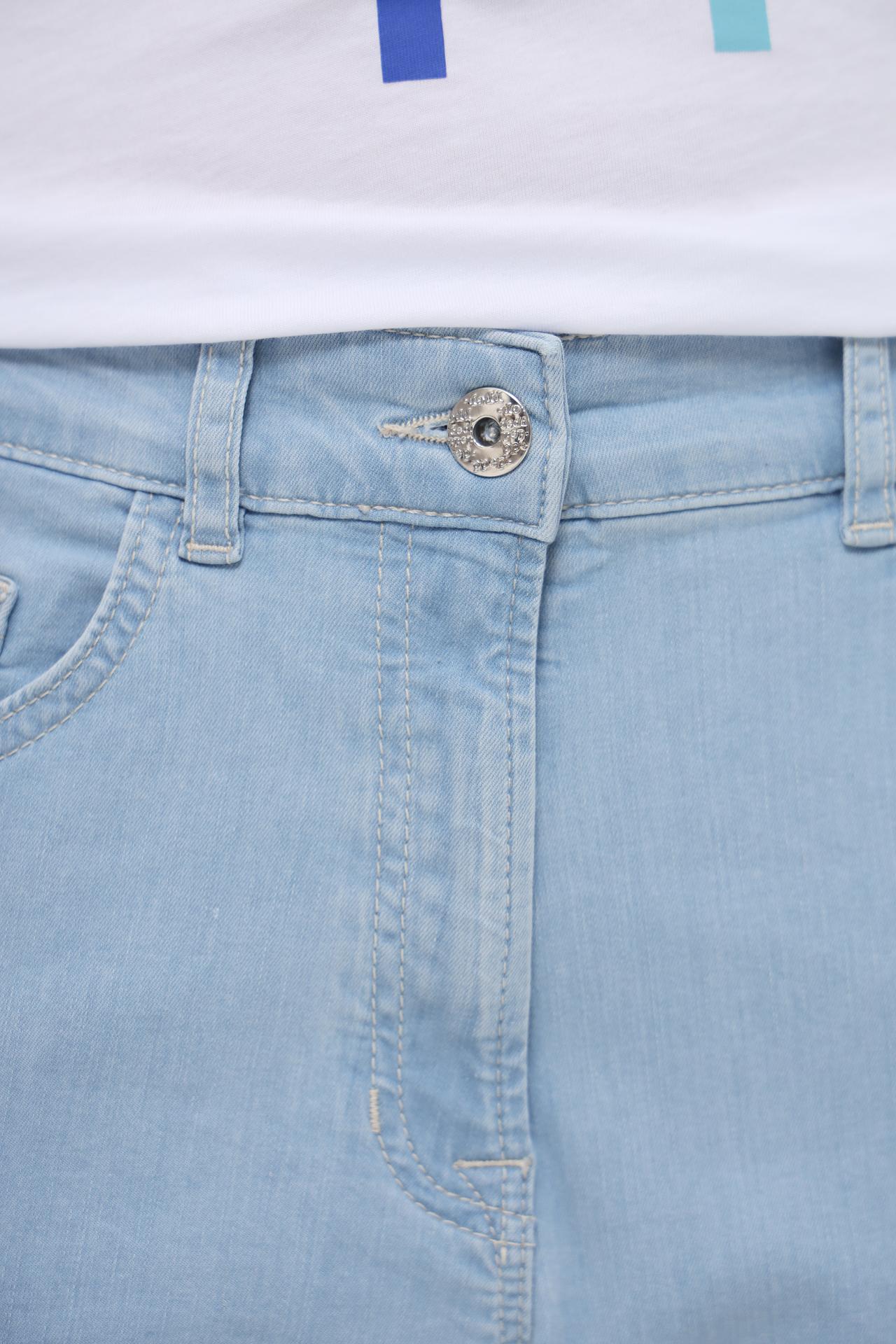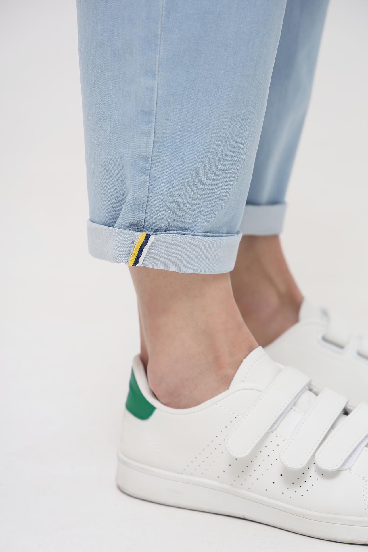- Универсальный дизайн: Классический голубой оттенок и возможность подвернуть штанины с акцентными полосками делают эти джинсы универсальным элементом гардероба, легко сочетающимся с различными топами и обувью.