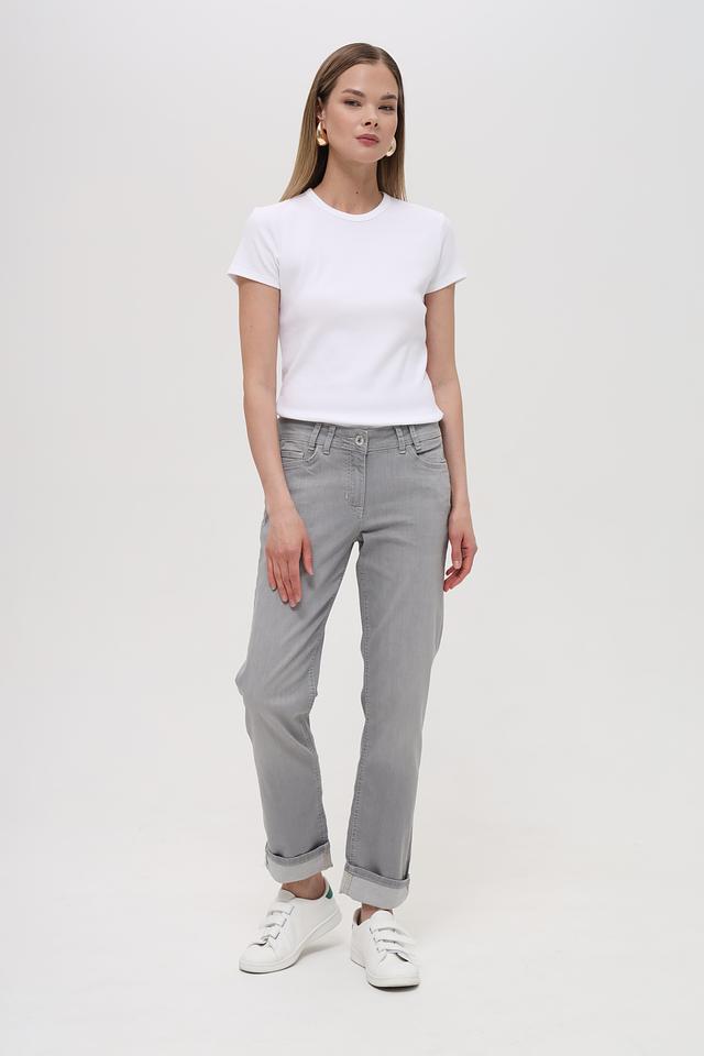 Джинсы выполнены из высококачественного хлопка (89%), который обеспечивает приятные ощущения при носке и хорошую воздухопроницаемость. Добавление полибутилентерефталата (8%) и эластана (3%) придает ткани эластичность и устойчивость к деформации, что позволяет джинсам сохранять свою форму даже после многократных стирок.