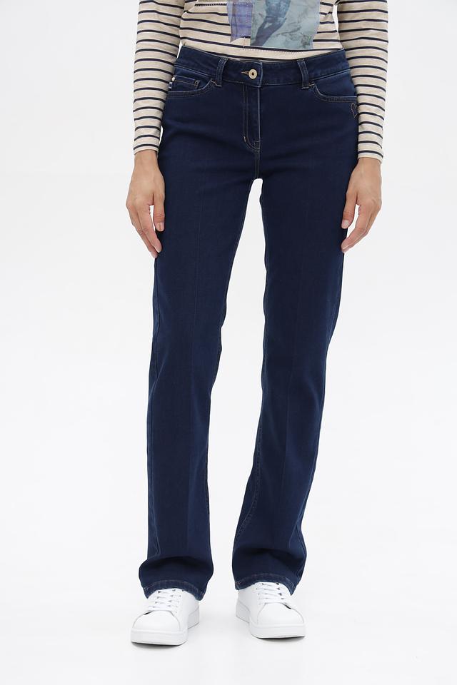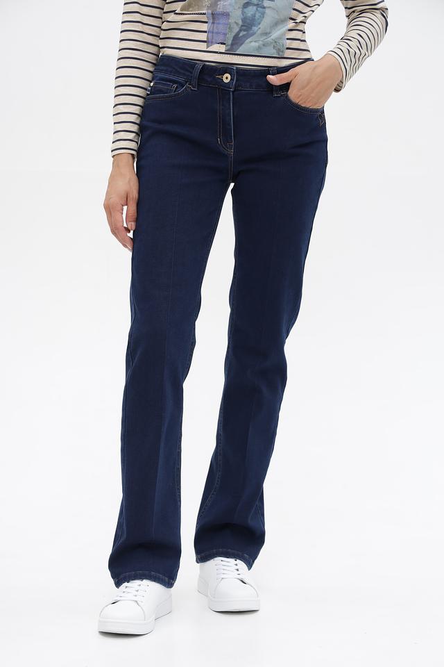 Женские джинсы клеш от Ppep классического темно-синего цвета. Модель выполнена из хлопка с добавлением вискозы, полиэстера и эластана для комфорта и износостойкости. Состав: хлопок 64%, полиэстер 23%, вискоза 11%, эластан 2%