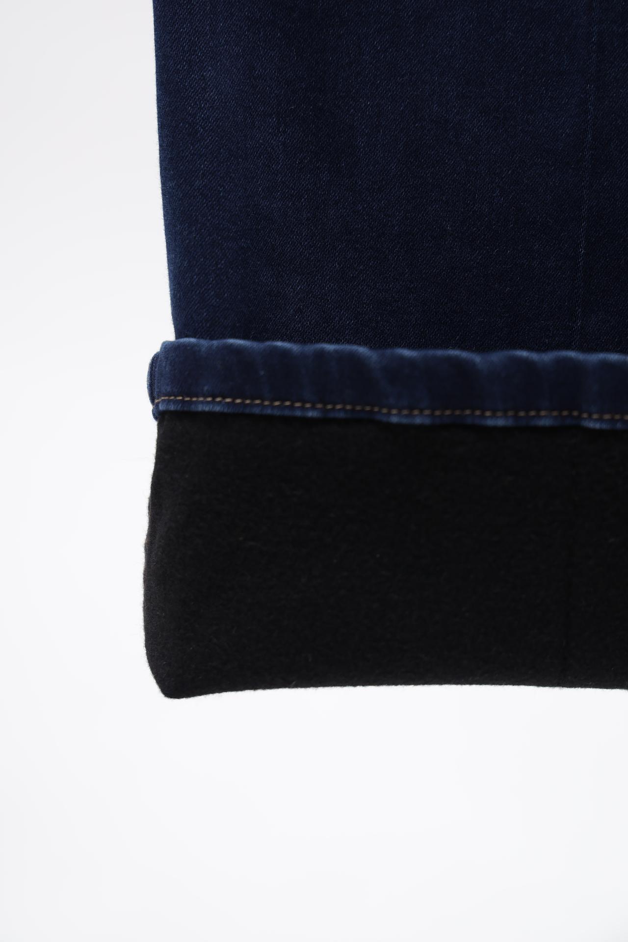 - Плотная ткань с флисовым утеплителем. Джинсы оснащены внутренней флисовой подкладкой, что обеспечивает тепло и комфорт в холодное время года. Высококачественная джинсовая ткань устойчива к износу и сохраняет форму.