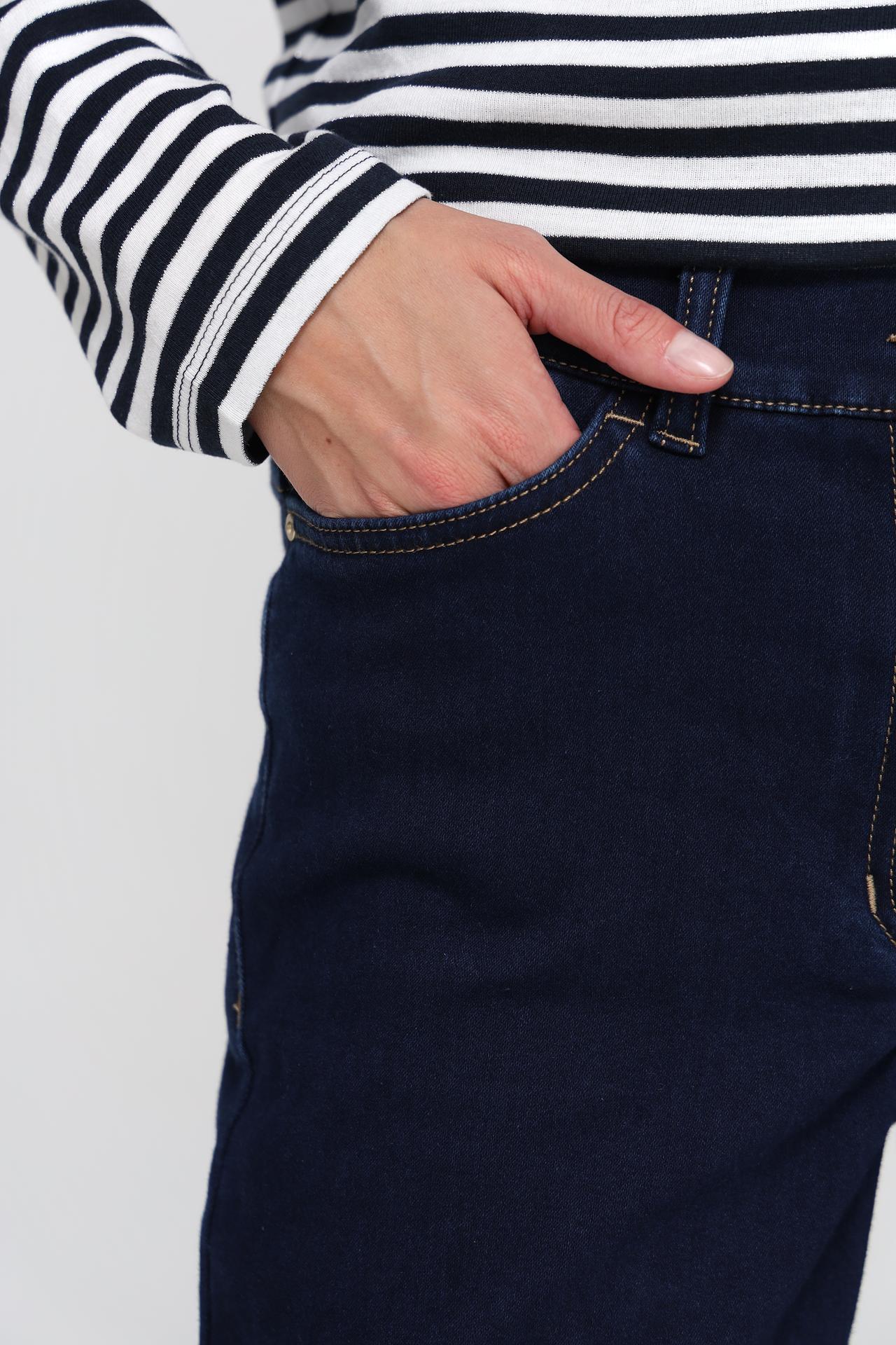 - Продуманный дизайн: Тёмно-синий оттенок и золотистая фурнитура создают элегантный и актуальный образ, позволяя легко интегрировать джинсы в разнообразные стили.