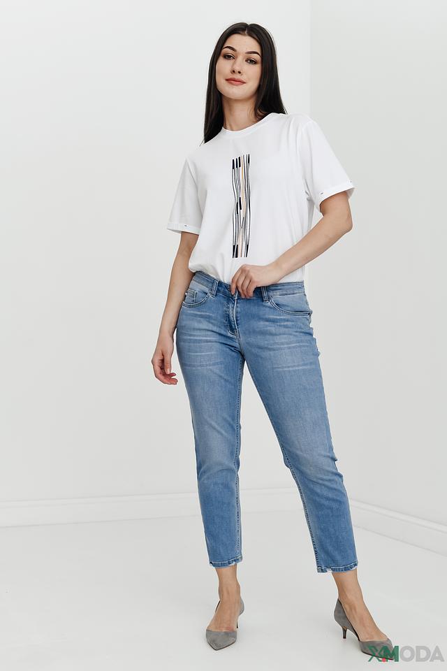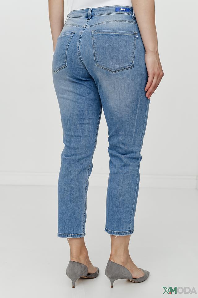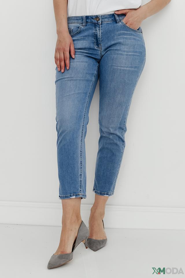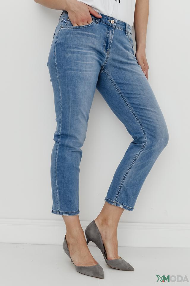 Джинсы имеют прямой крой и укороченную длину, что придает им современный и модный вид. Эффект потертостей добавляет образу непринужденности и индивидуальности. Застежка на молнию и пуговицу обеспечивает надежную фиксацию. Пять карманов – два спереди, два сзади и один небольшой карман для мелочи.