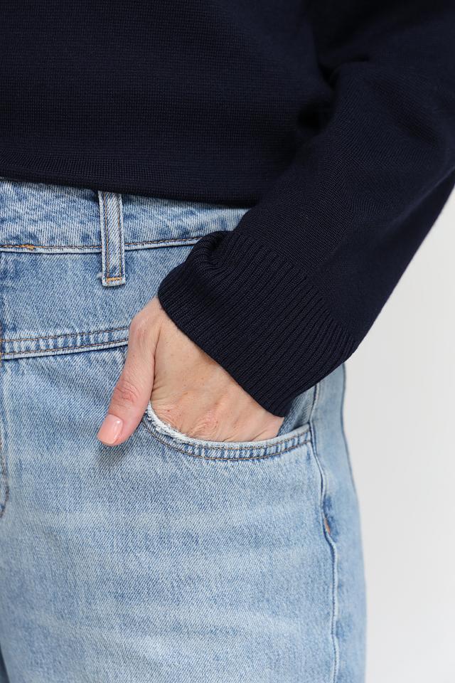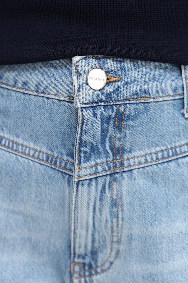 Женские джинсы Mom Fit от Rich and Royal голубого цвета, выполнены из 100% хлопка. Модель с завышенной талией и свободным кроем, оформлена манжетами внизу брюк. Состав: хлопок 100%