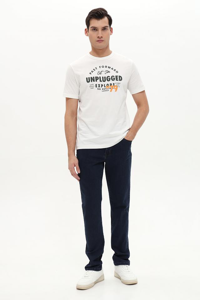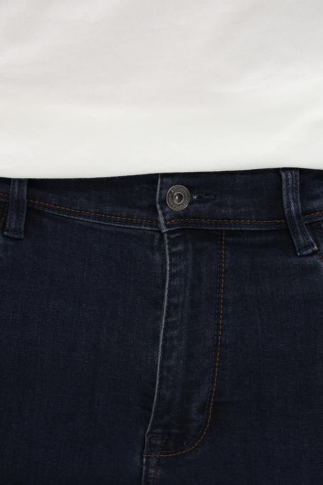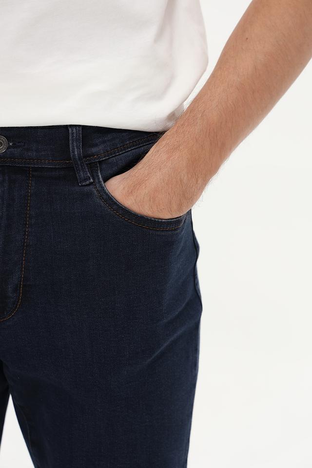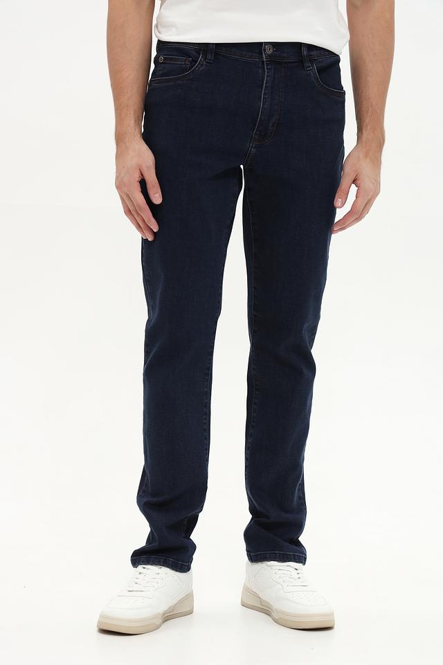 Джинсы выполнены в насыщенном синем цвете, который легко сочетается с различными элементами гардероба. Материал – плотный хлопок (92%) с добавлением полиэстера (6%) и эластана (2%), что обеспечивает комфорт при носке, хорошую износостойкость и небольшую эластичность.