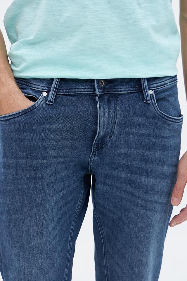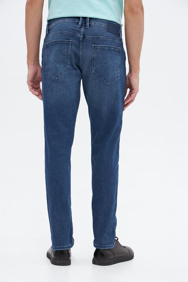 Джинсы имеют прямой крой, который обеспечивает свободу движений и комфортную посадку. Состав ткани включает 71% хлопок, 28% полиэстер и 1% эластан, что гарантирует приятные тактильные ощущения, износостойкость и небольшую эластичность.